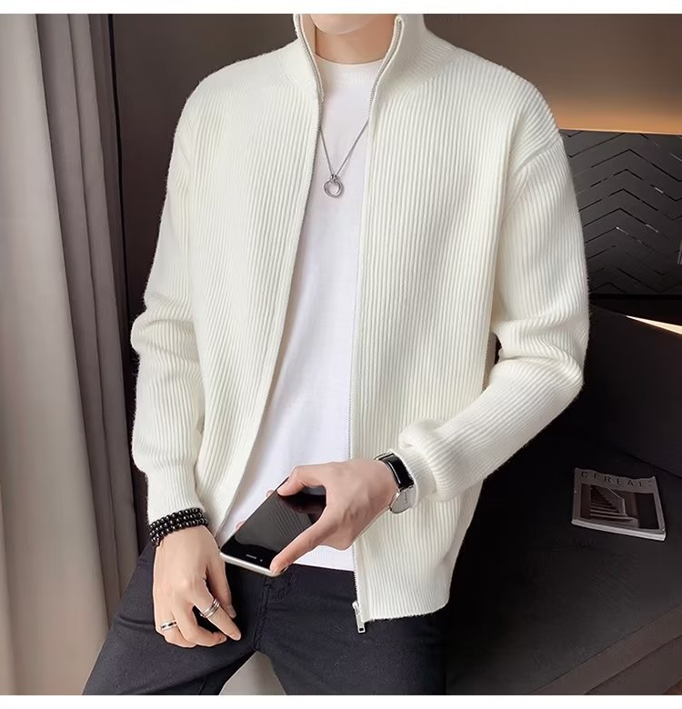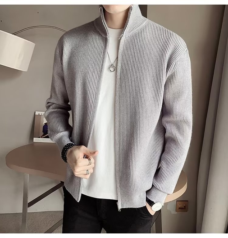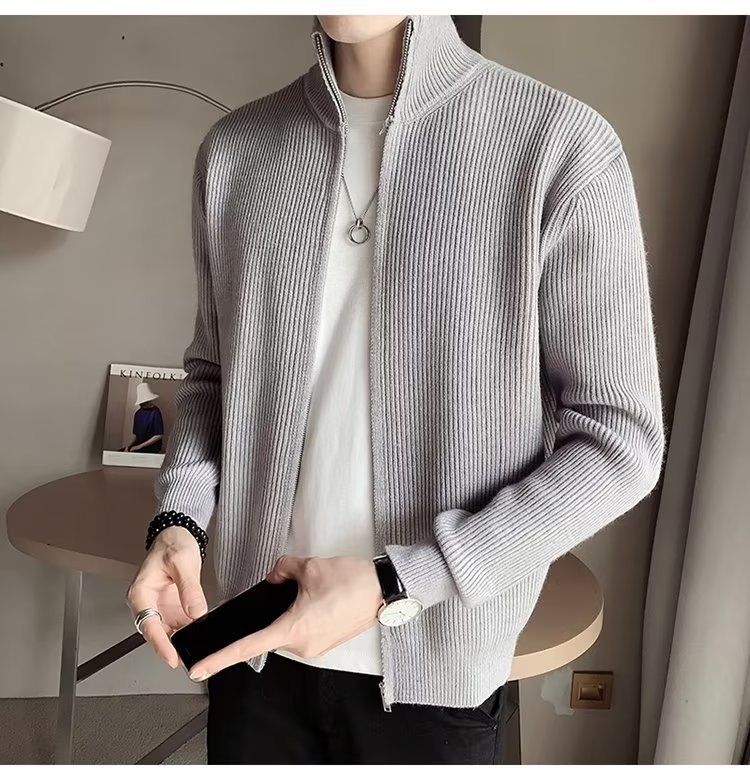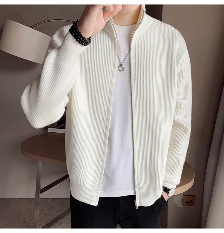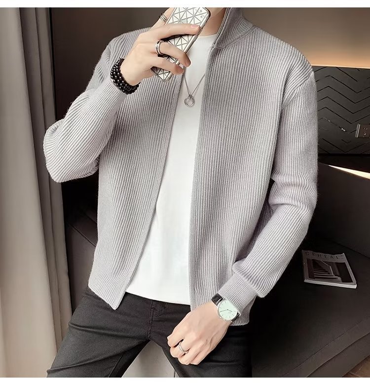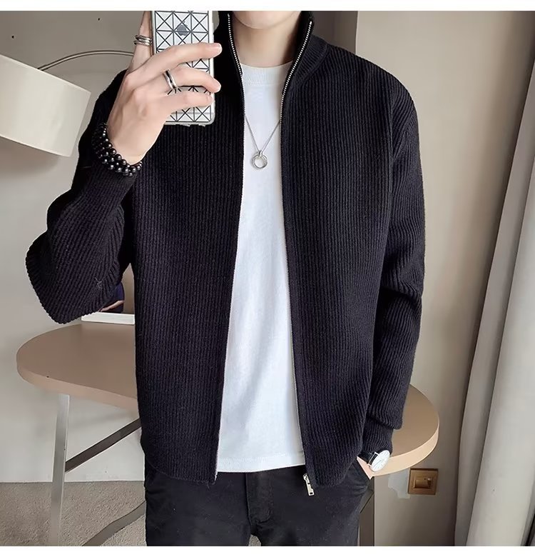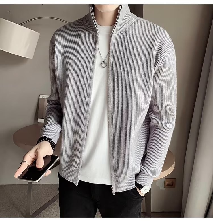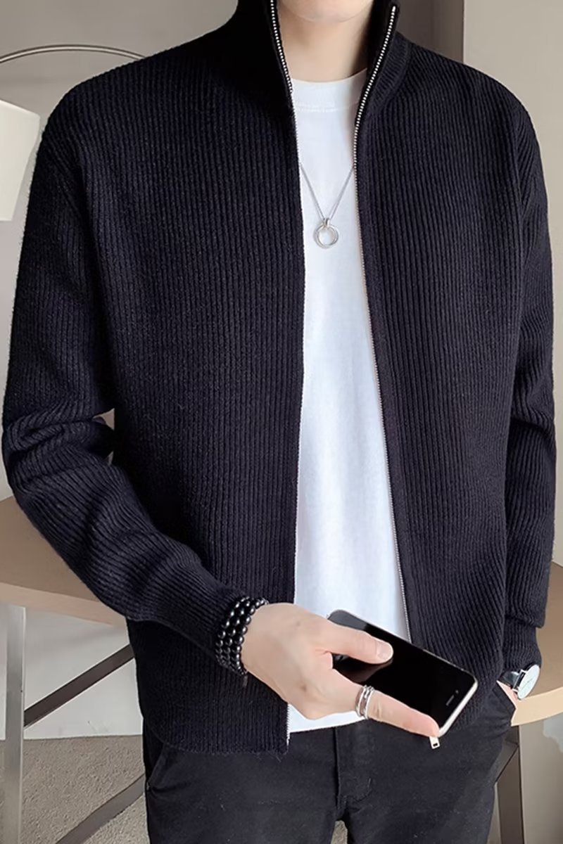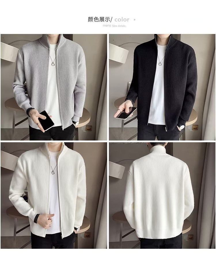 Comercio exterior de algodón Otoño e Invierno nuevos hombres suéter cardigan forrado de lana engrosada abrigo cálido suéter para hombres