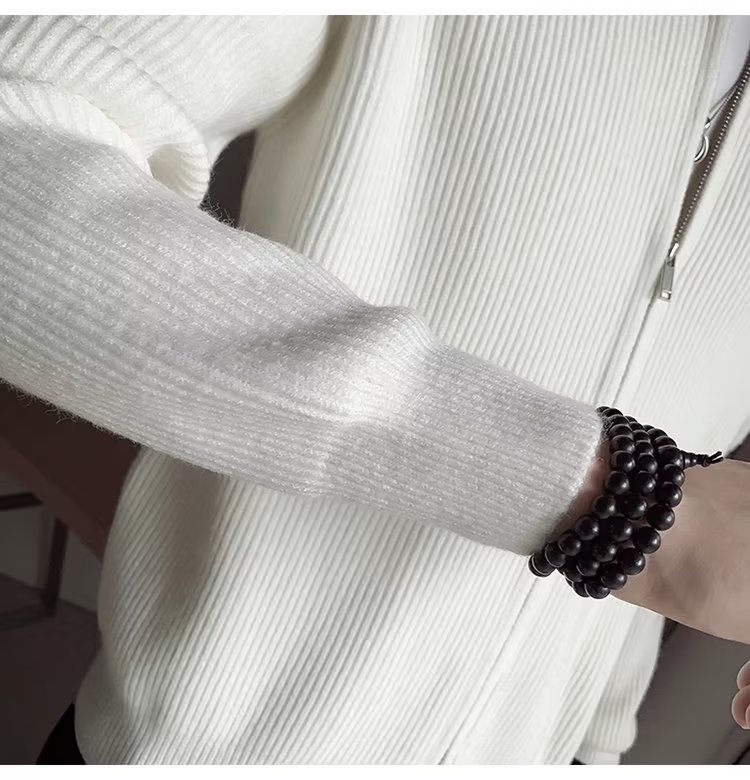 UAZC japonés cuello alto estilo minimal suave ceroso color sólido con cremallera suéter casual retro hombres y mujeres cárdigan suéter grueso exterior
