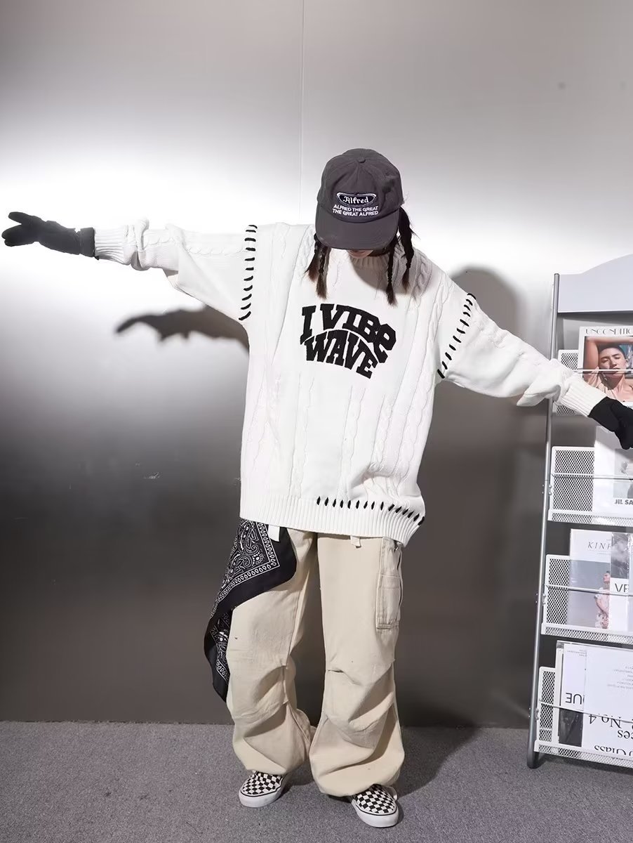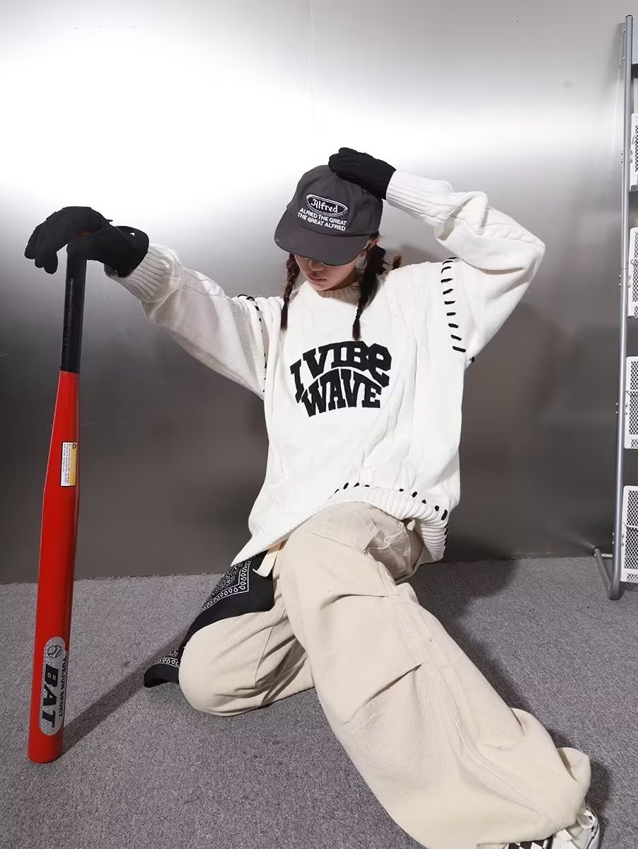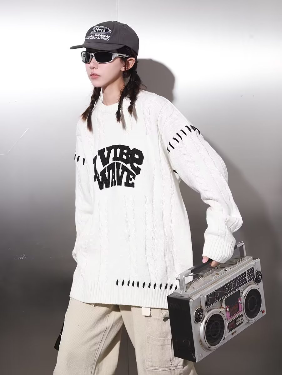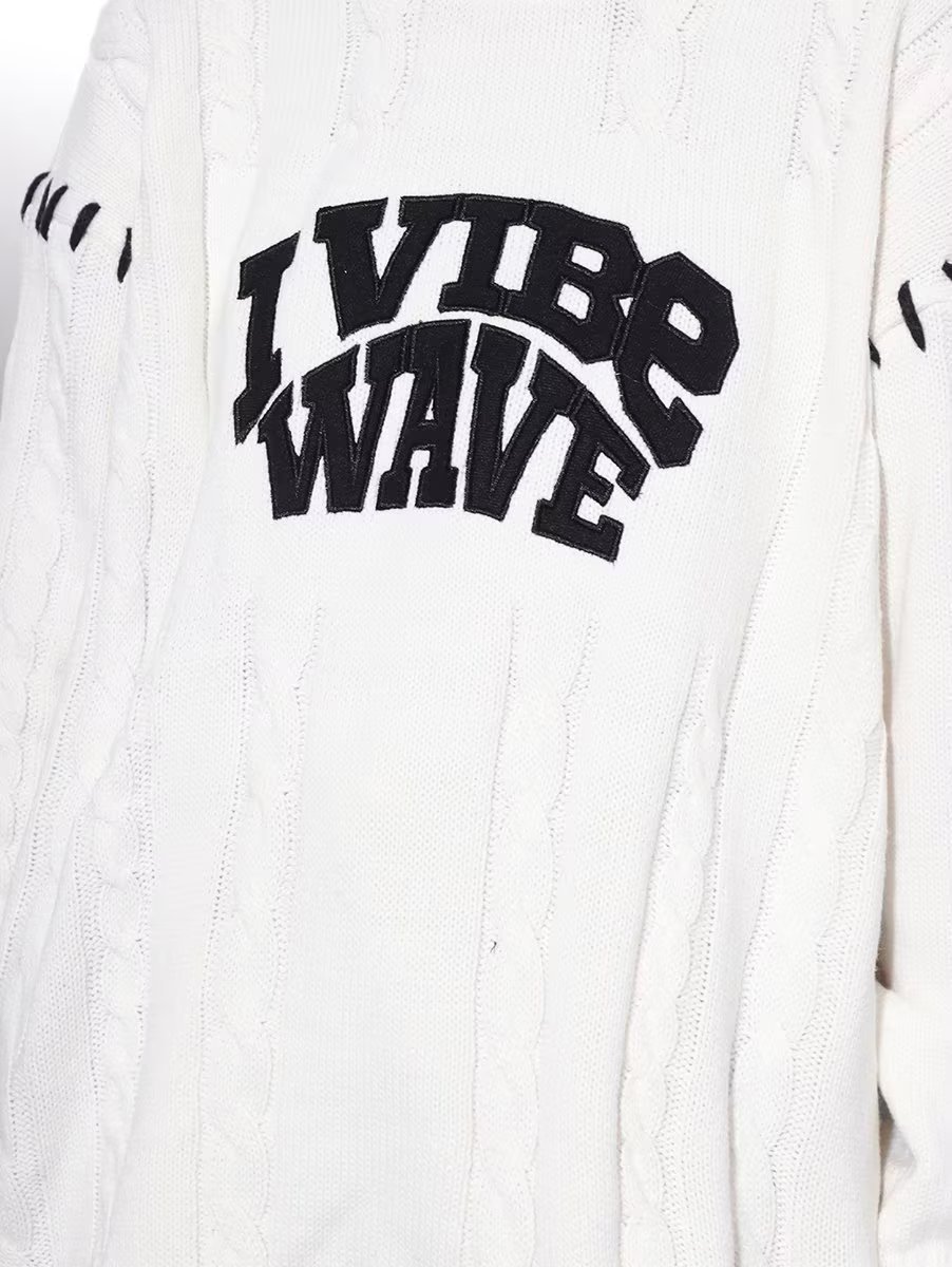 Trendy Feel Lonely National Tide diseño original sentido alfabeto bordado correas torcido cuello redondo suéter de nicho hombre