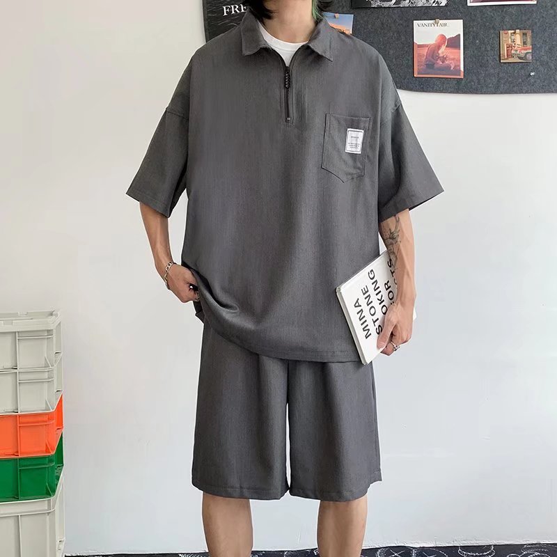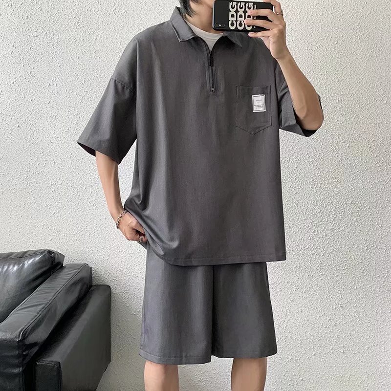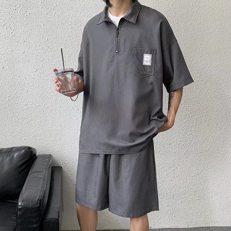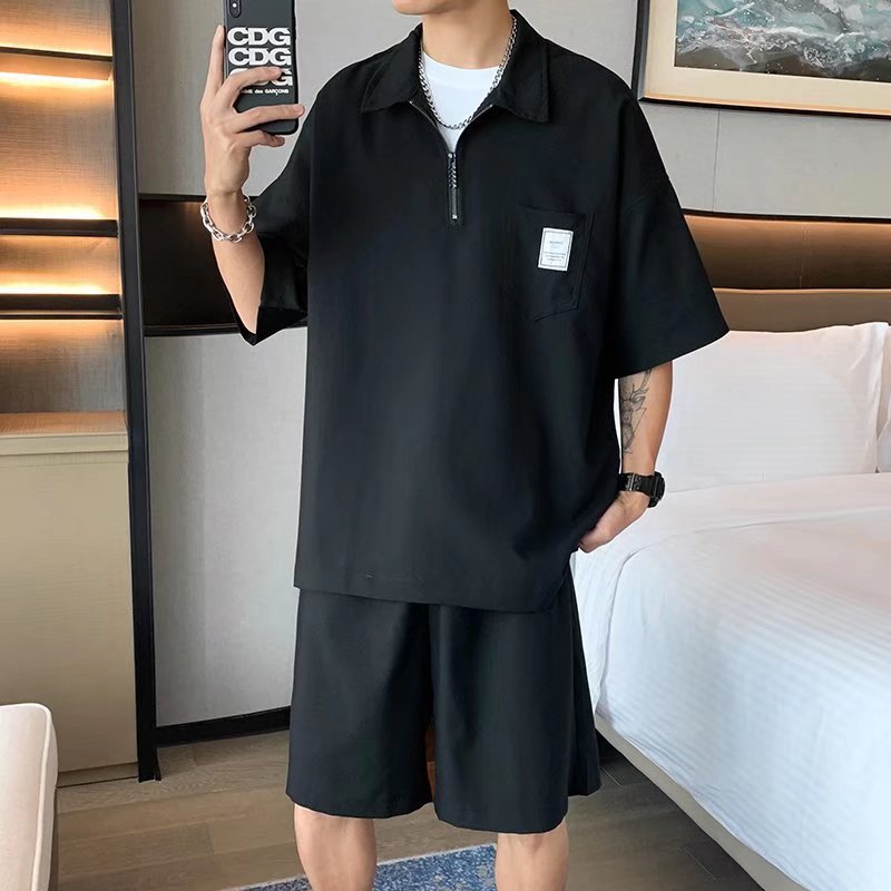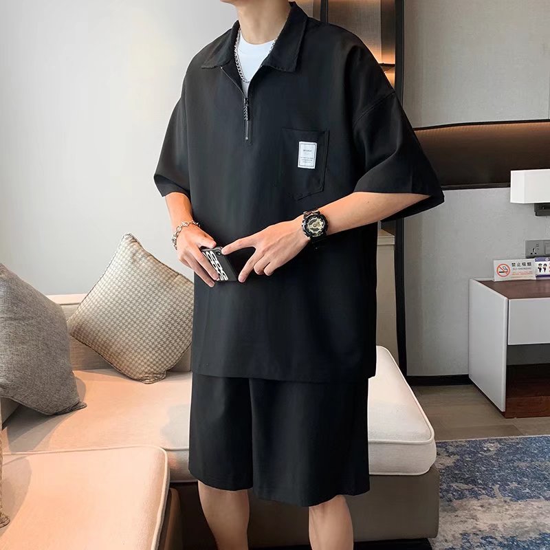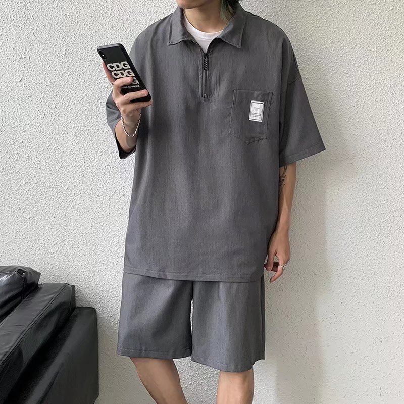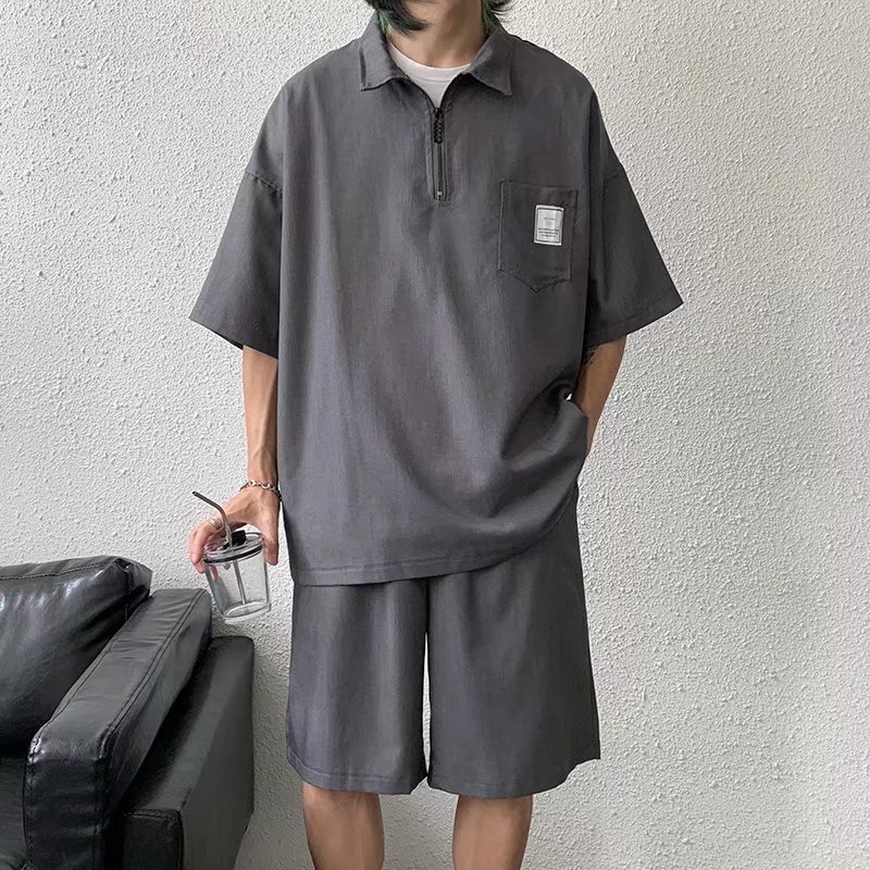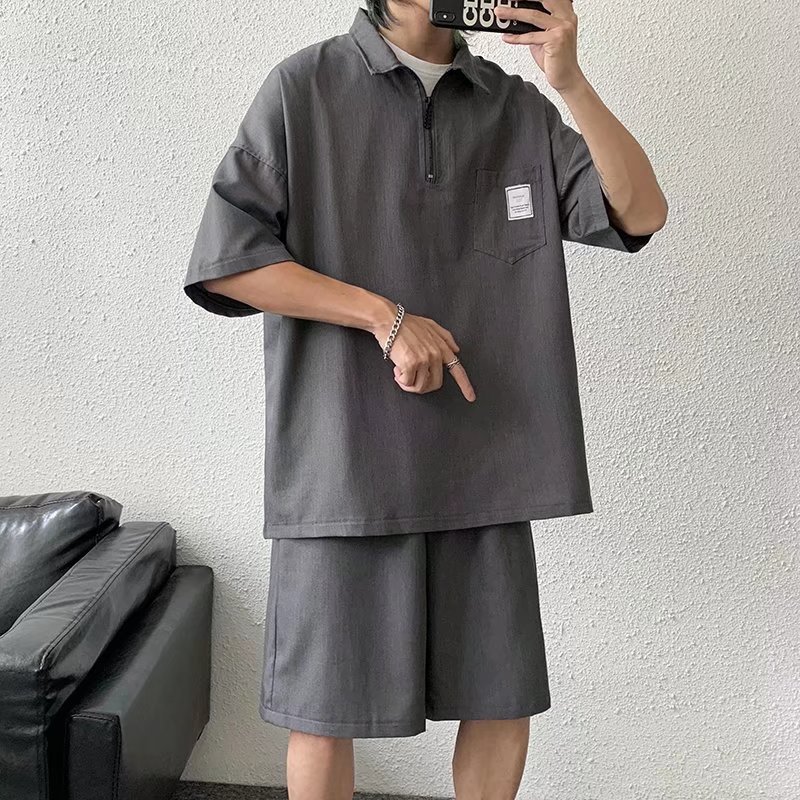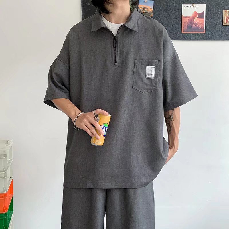Tendencia verano solapa manga corta camisa POLO hombre japonés estilo universitario juvenil suelto casual pareja camisa de camiseta