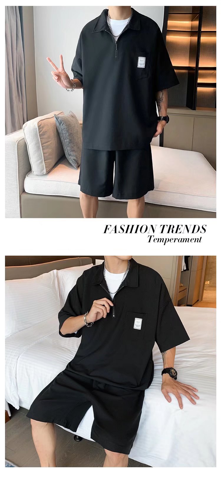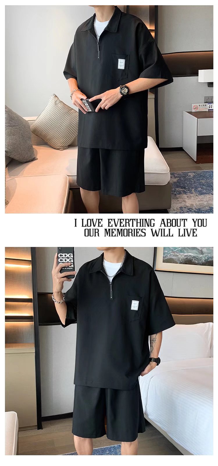 Polo de manga corta de primavera y verano para hombre, pareja, temperamento elegante, moda, ropa negra informal suelta, marca de moda