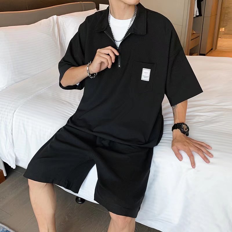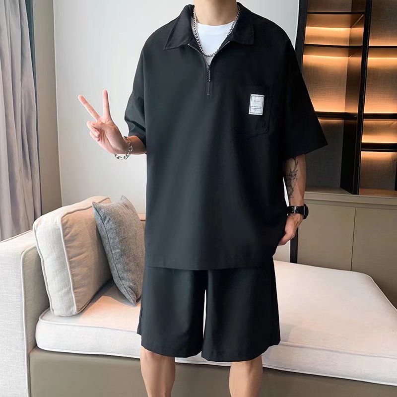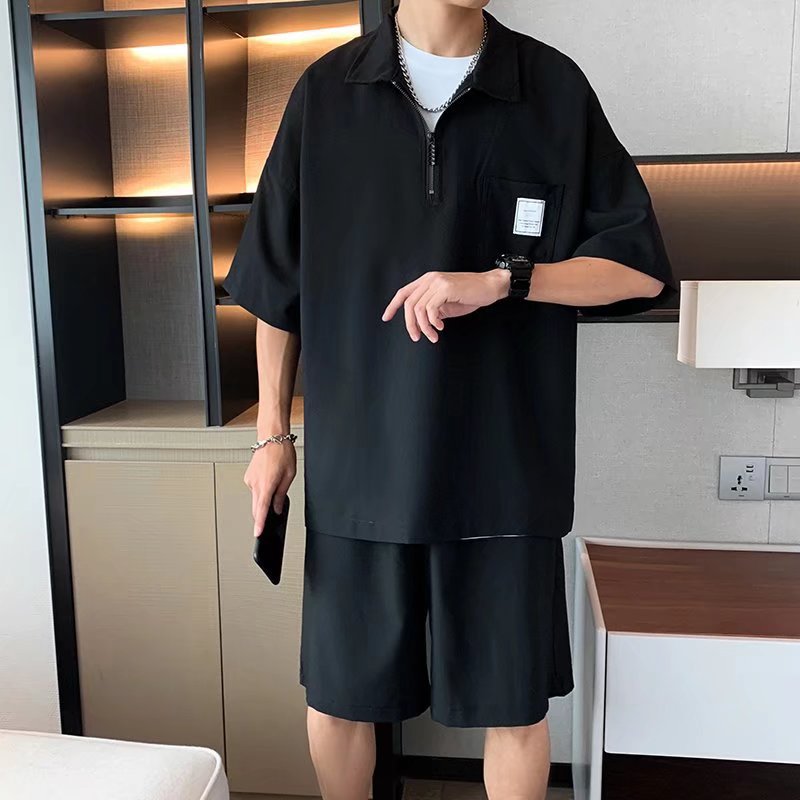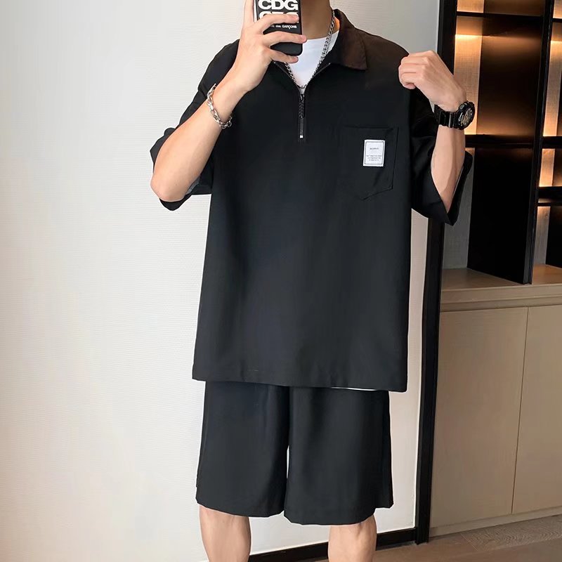 Polo camisa de moda de los hombres marca de moda verano líder Camiseta de manga corta de los hombres estilo japonés ruoshuai color sólido todo partido de punto superior