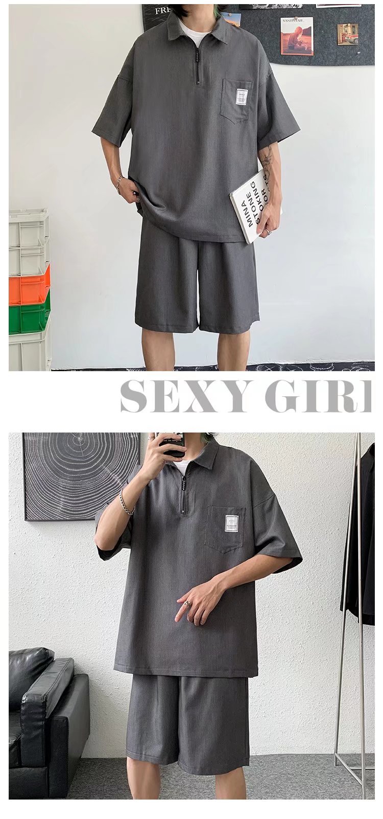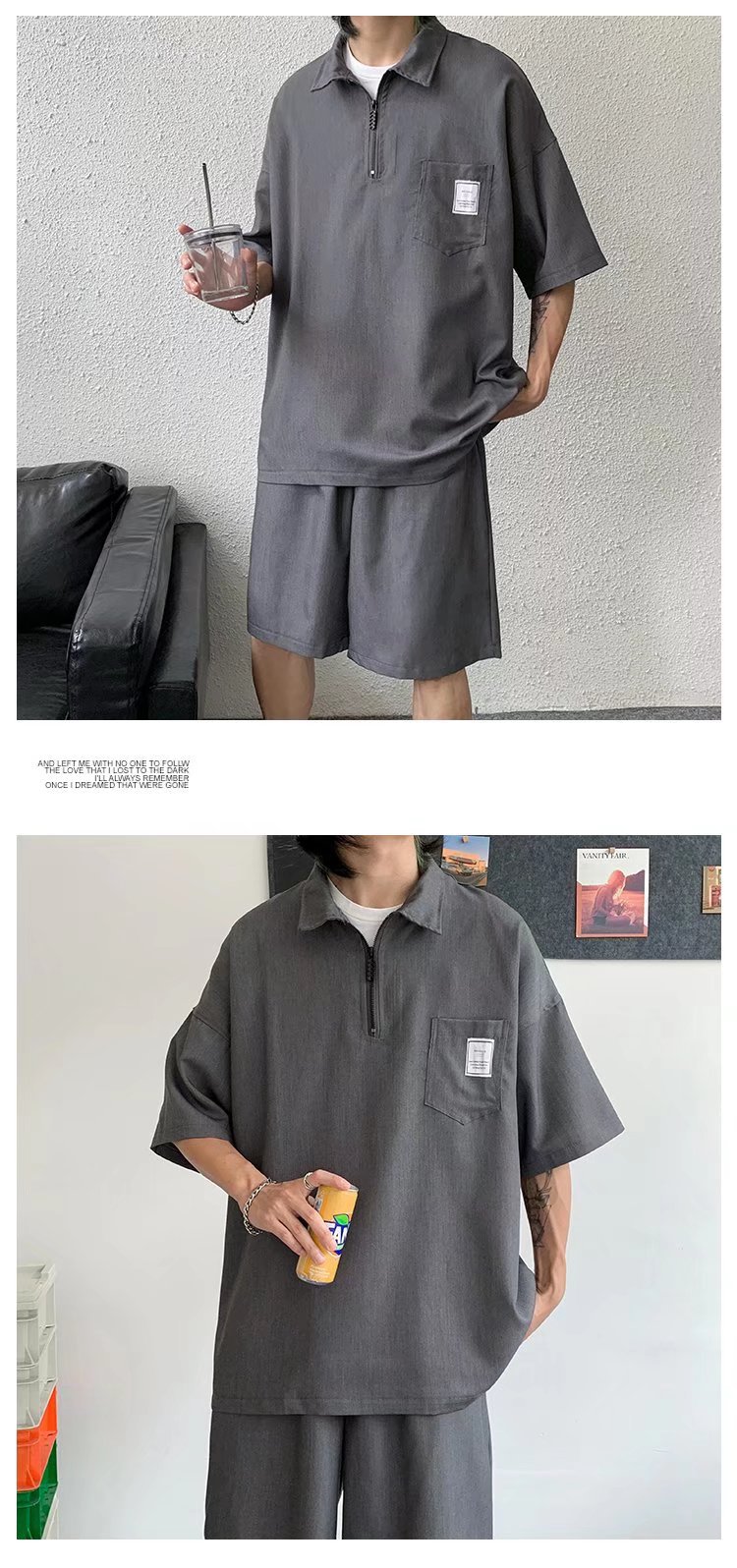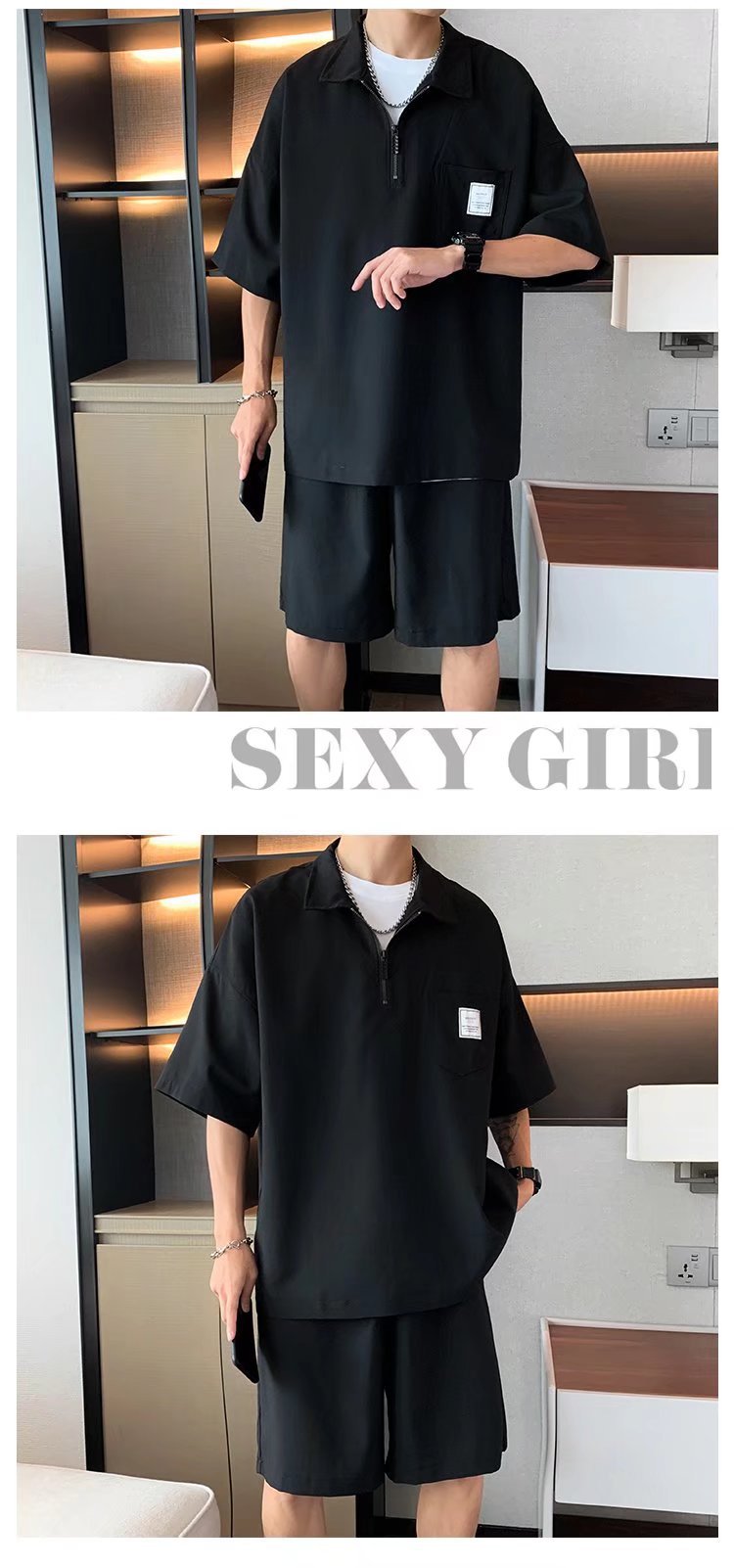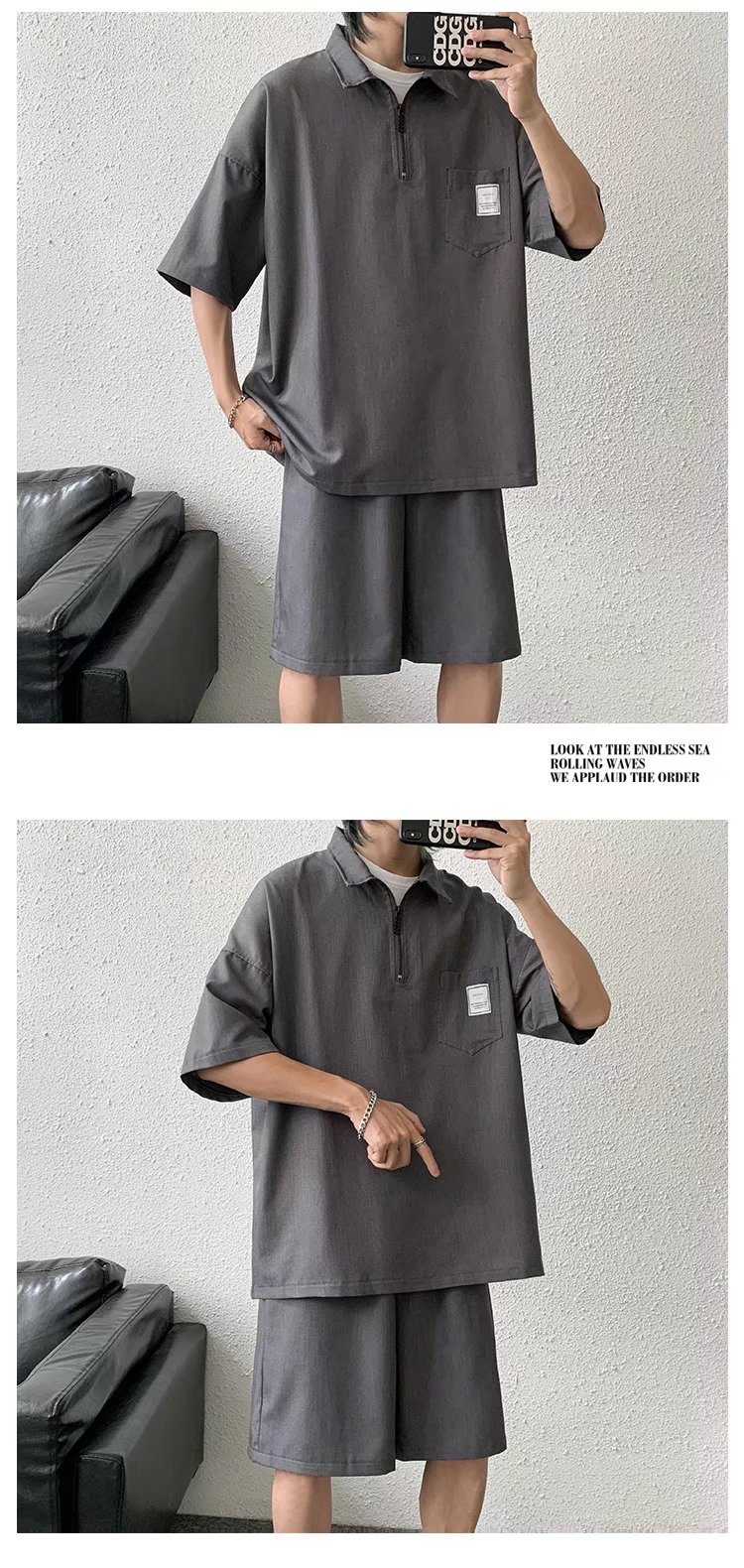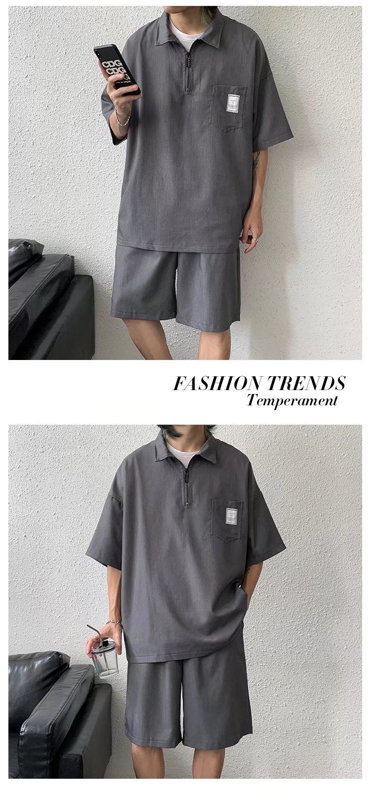 Venta directa de fábrica de camisetas de punto de seda de hielo para hombre, polos de manga corta de lujo de alta gama para hombre con media cremallera