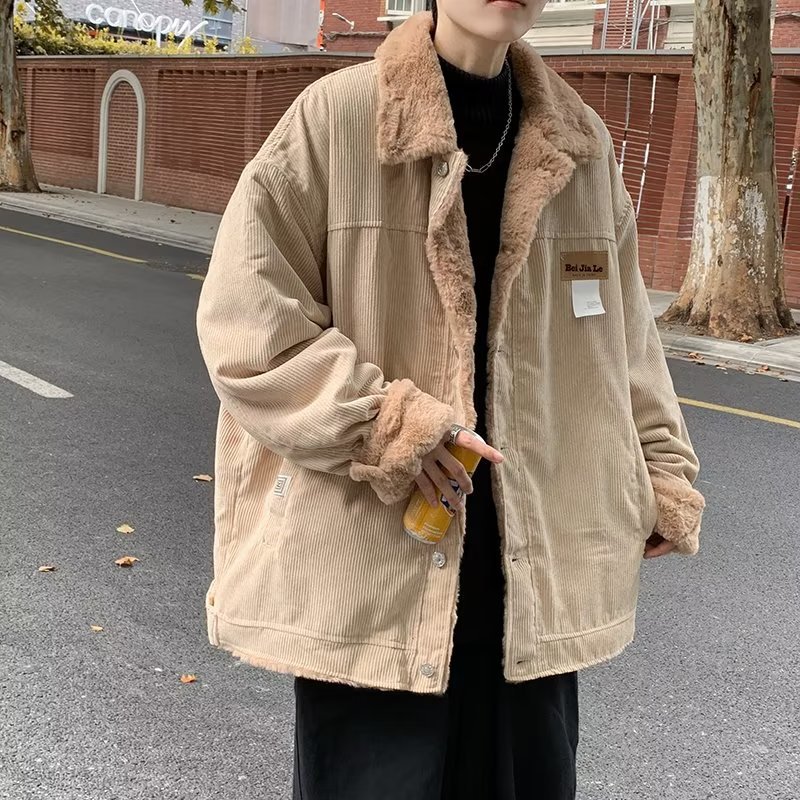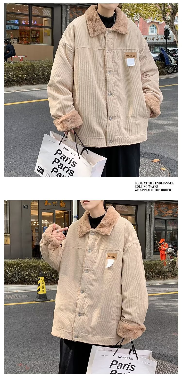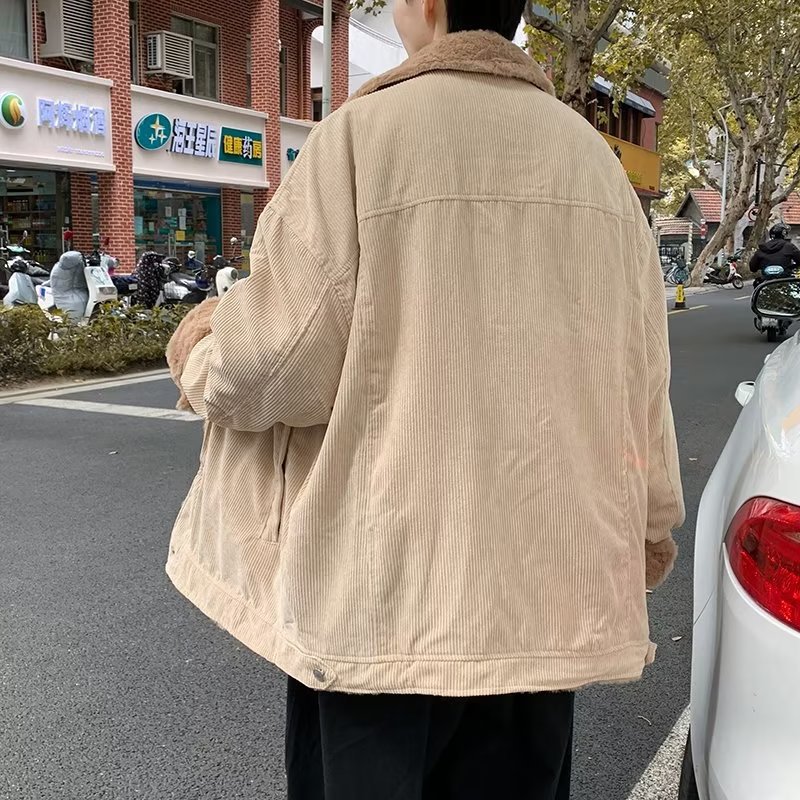 Abrigo de algodón de pana retro estilo de Hong Kong para hombres y mujeres invierno estilo coreano chic estilo de Hong Kong ropa de algodón gruesa informal de moda