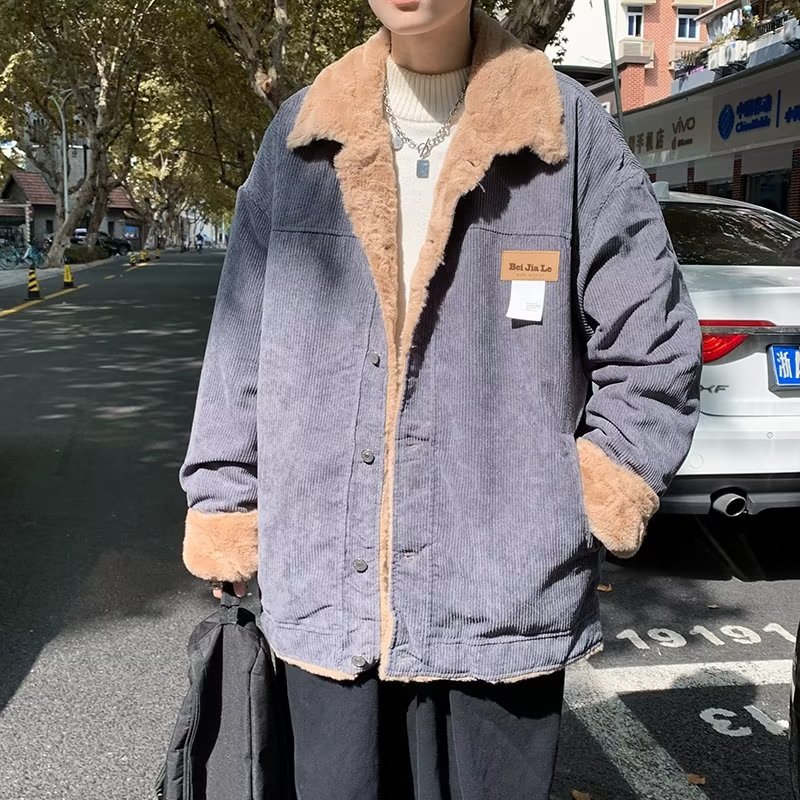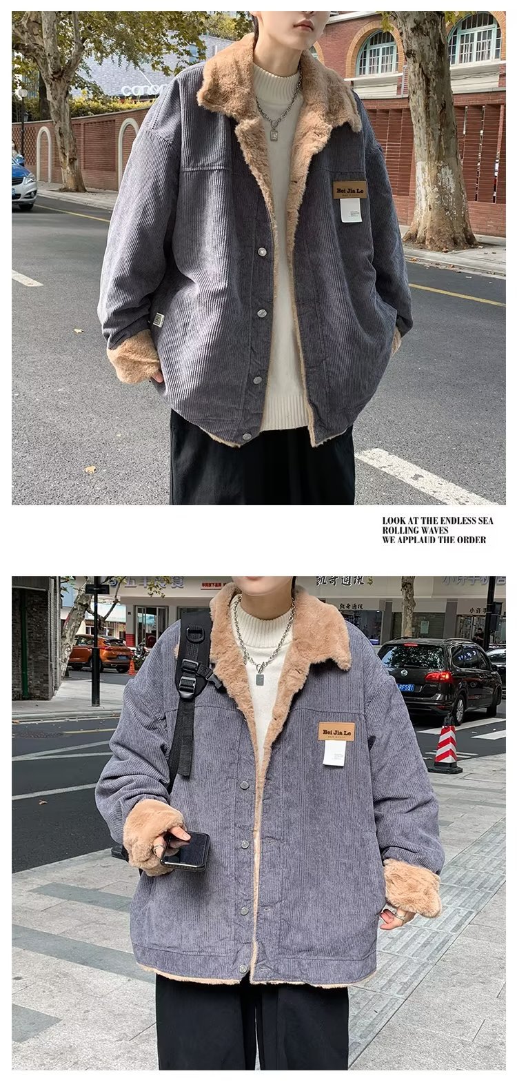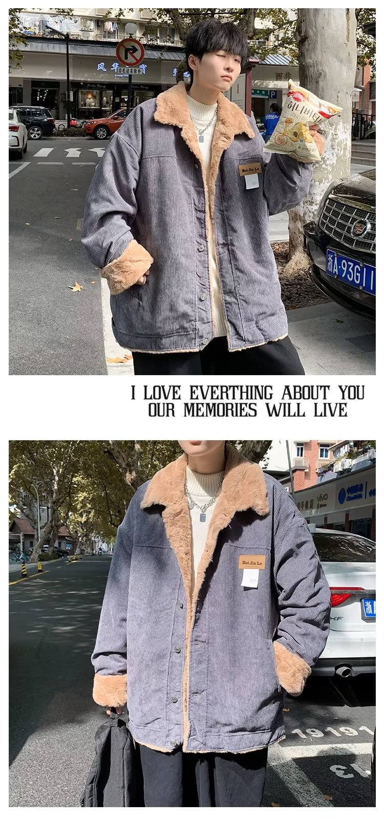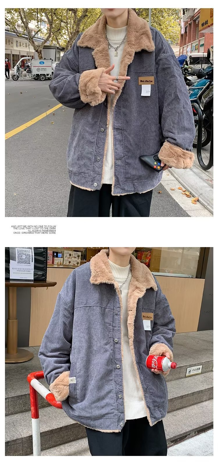 2023 chaqueta de lana de cordero hombres invierno suelta moda estudiantes de secundaria acolchada engrosada chaqueta de los hombres