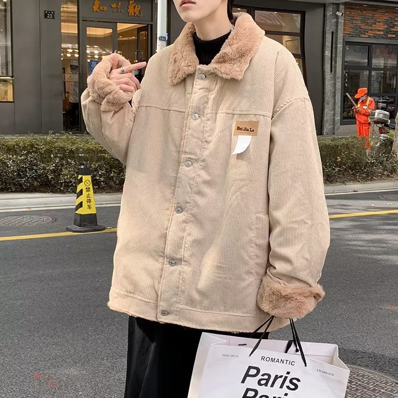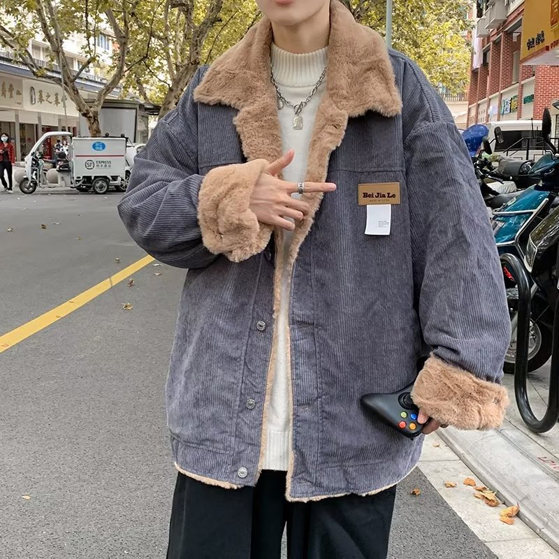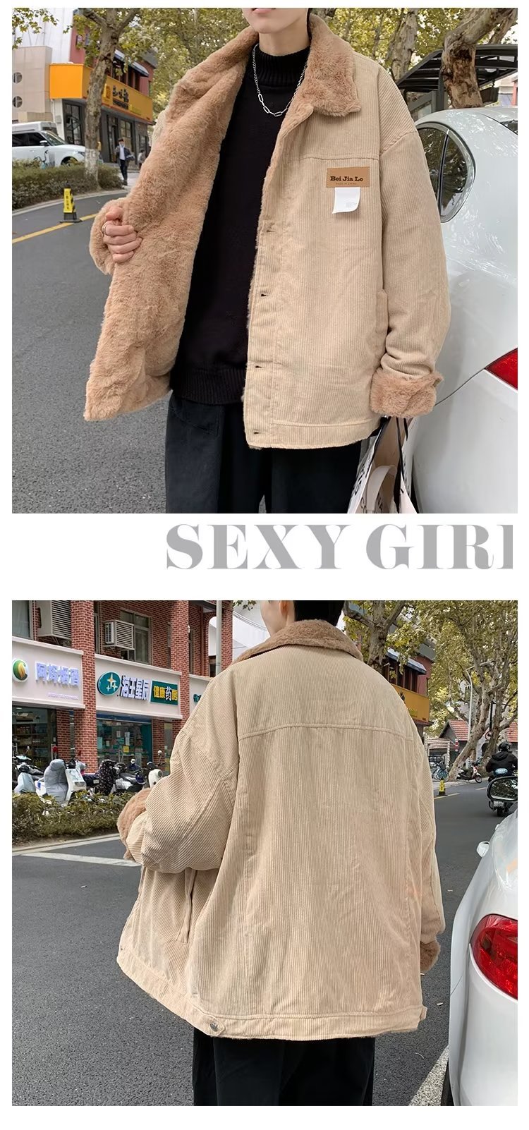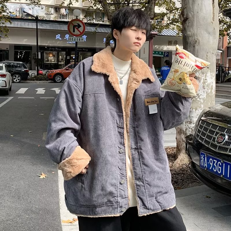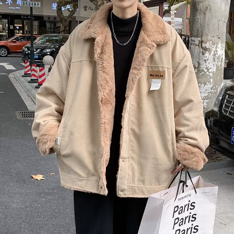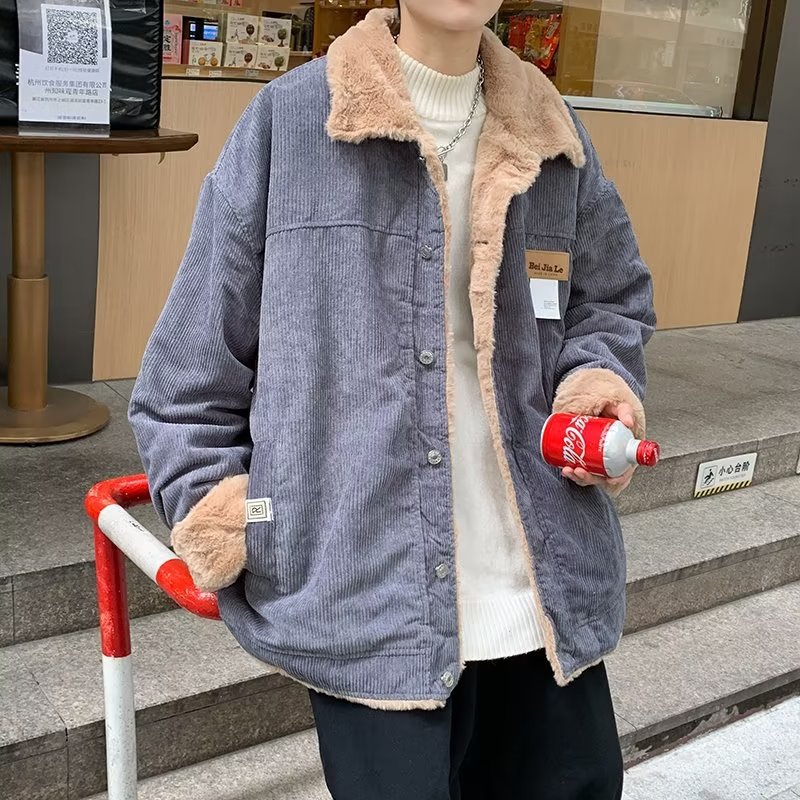 2023 chaqueta de lana de cordero hombres invierno suelta moda estudiantes de secundaria acolchada engrosada chaqueta de los hombres