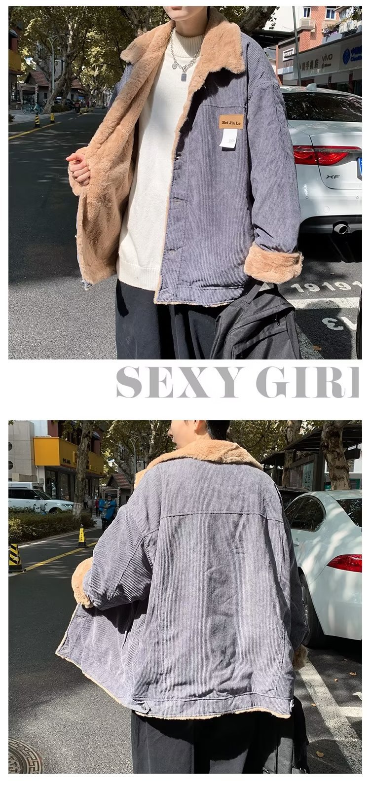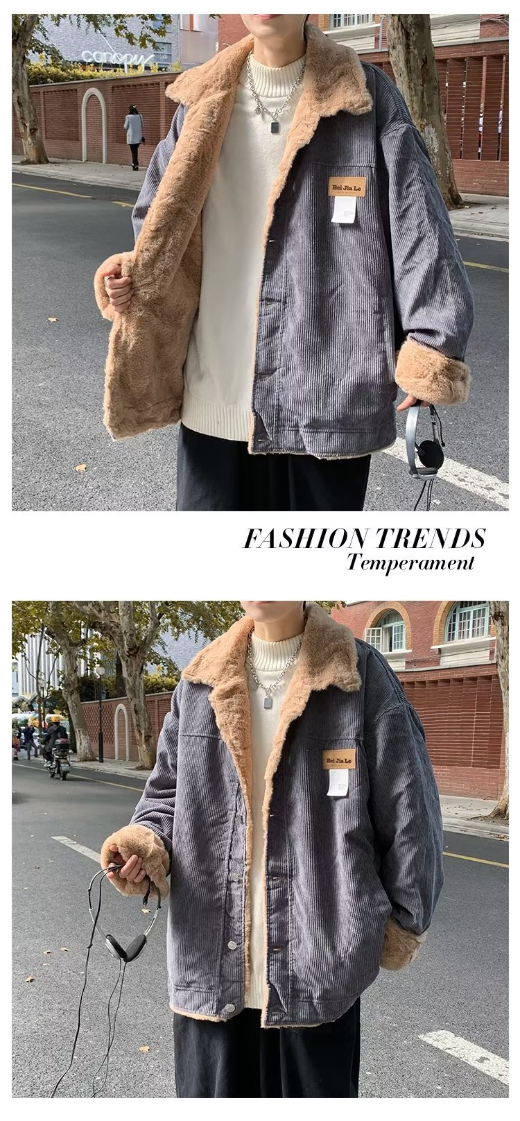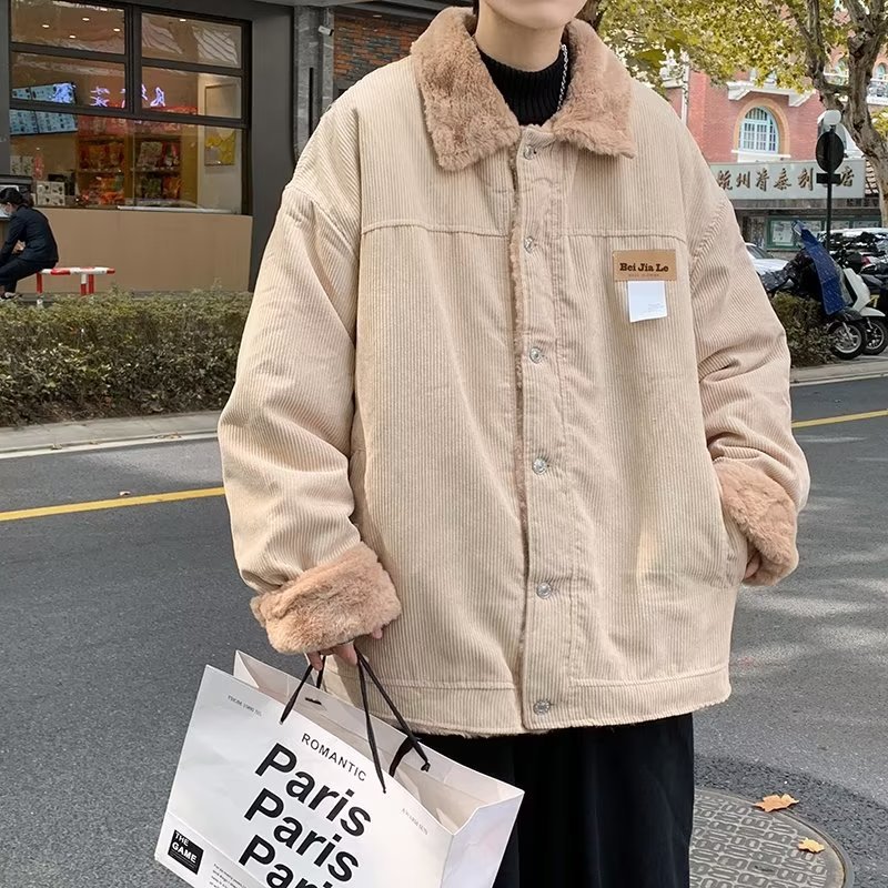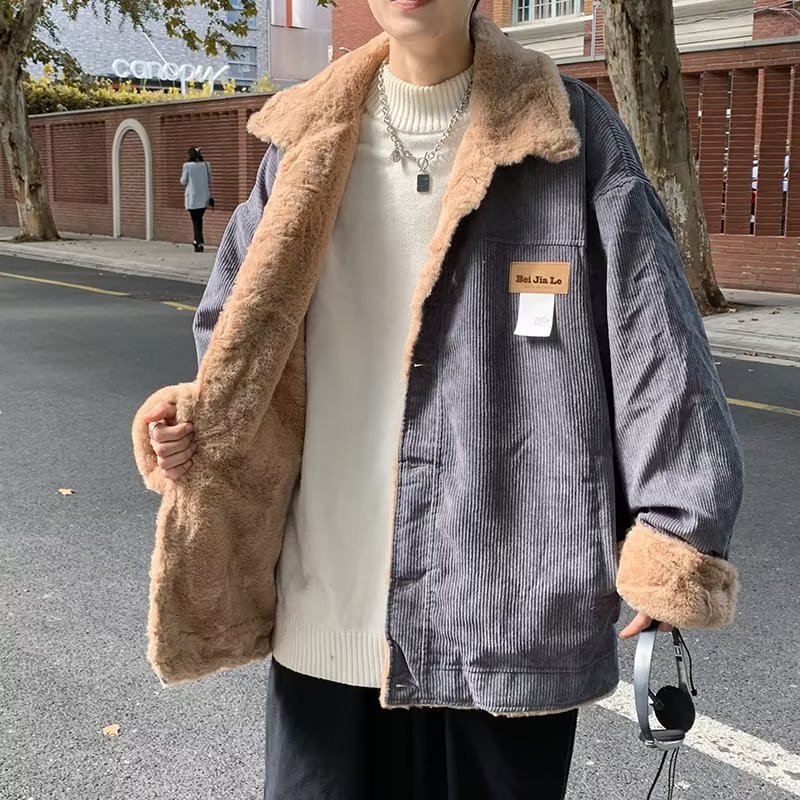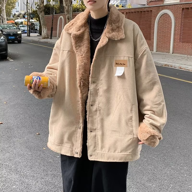2023 chaqueta de lana de cordero hombres invierno suelta moda estudiantes de secundaria acolchada engrosada chaqueta de los hombres