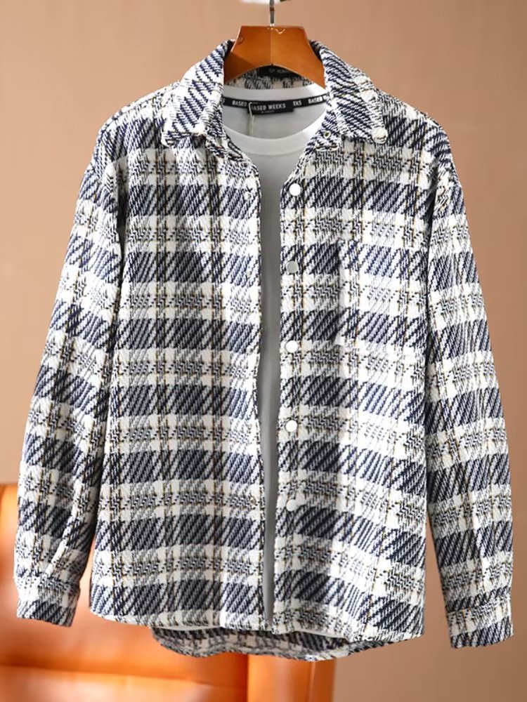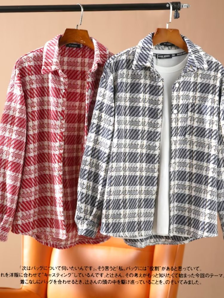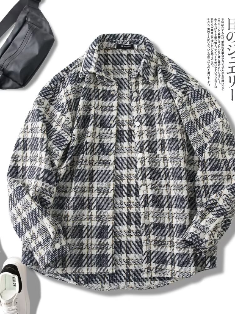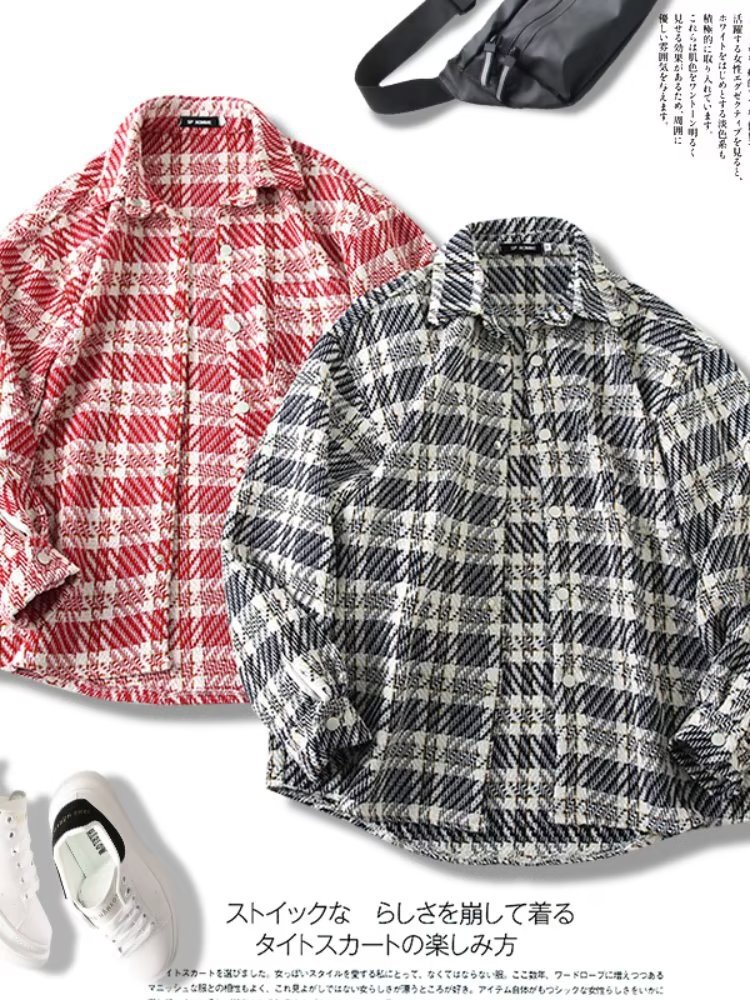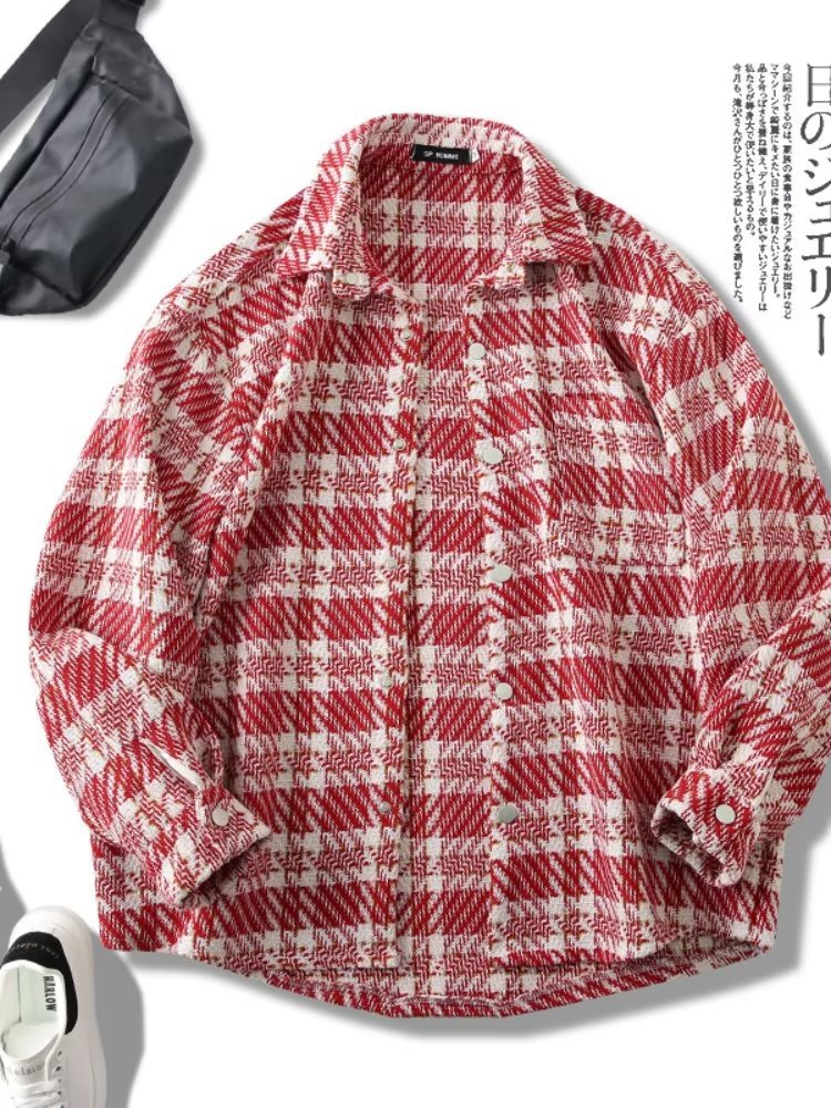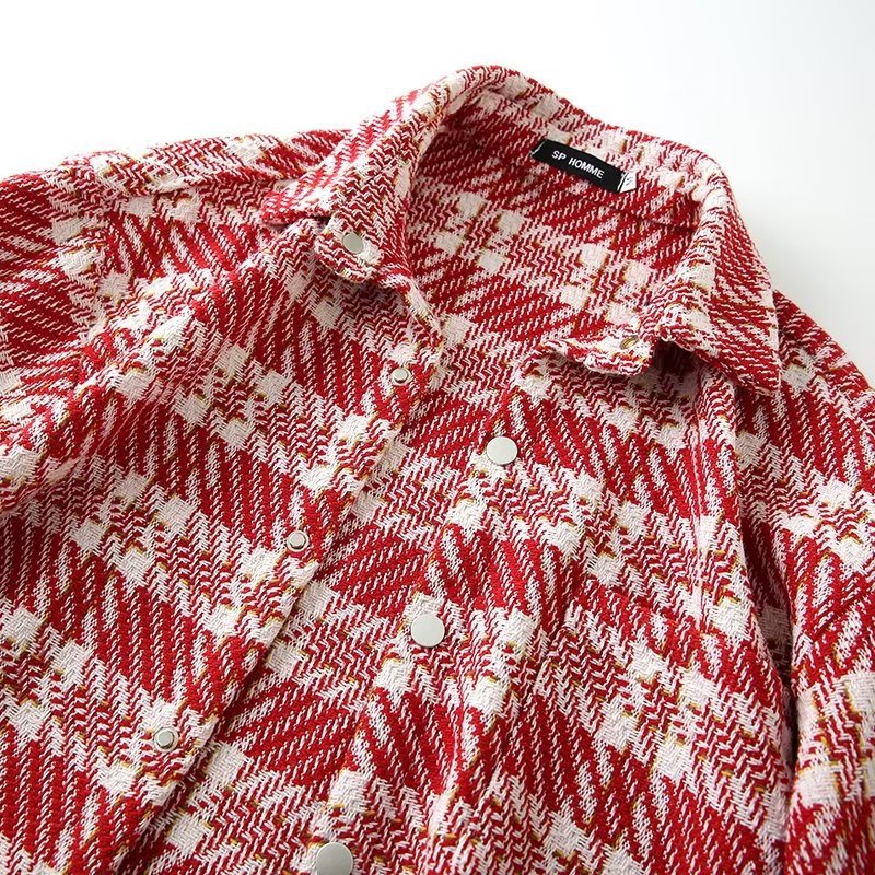 Hip Hop Trendy Brand American Beauty Trendy Retro Tinta salpicada Bordado a cuadros Chaqueta de manga larga Hombres y mujeres sueltos casuales ins