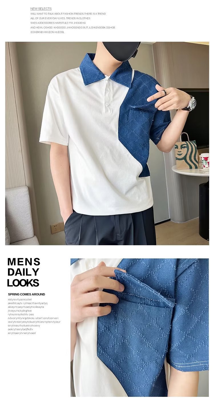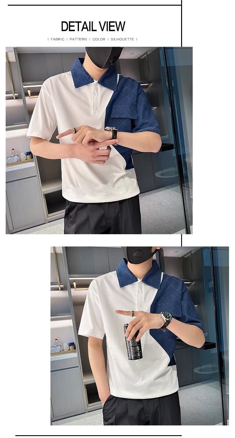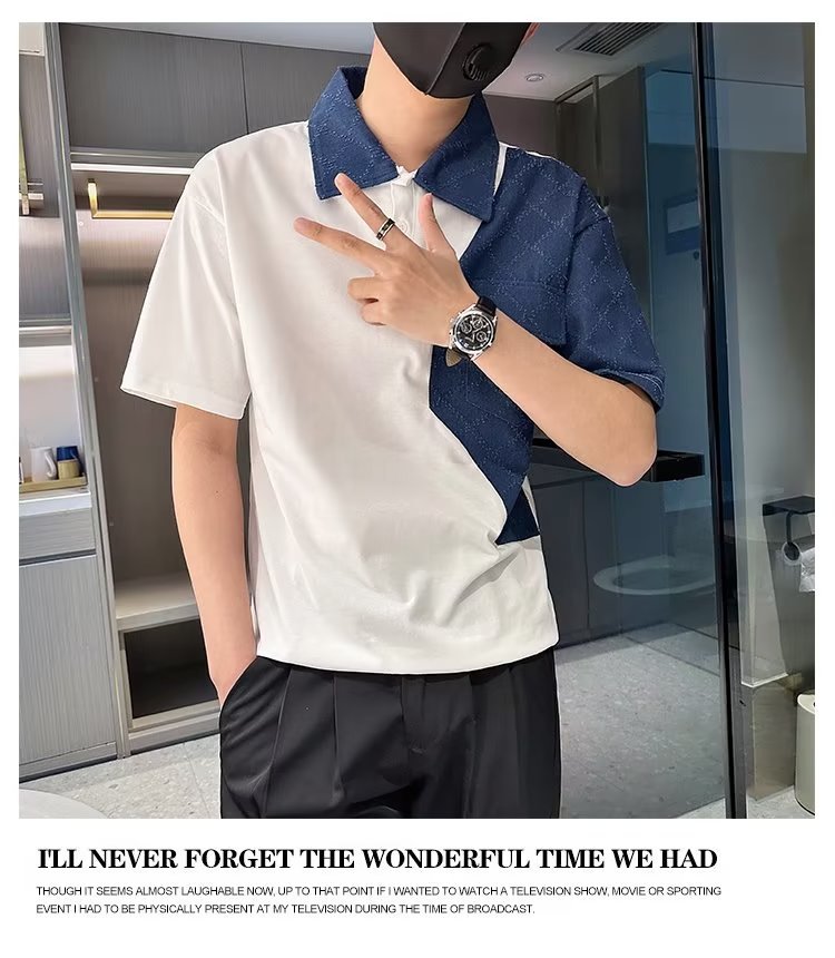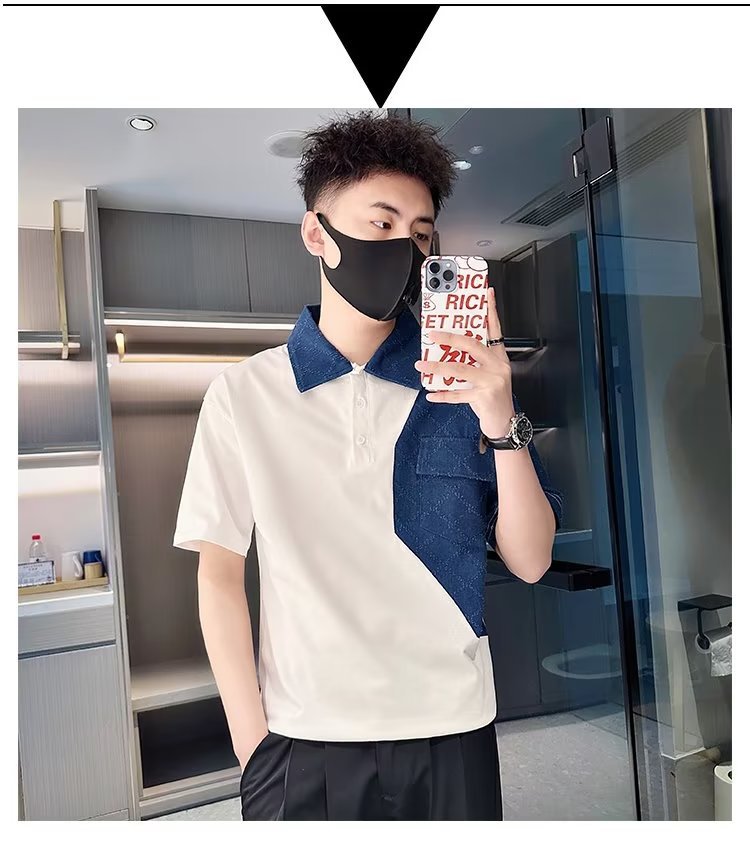 Tendencia 2024 nueva moda social chico verano camiseta de manga corta camiseta masculina bordado camiseta de media manga solapa polo