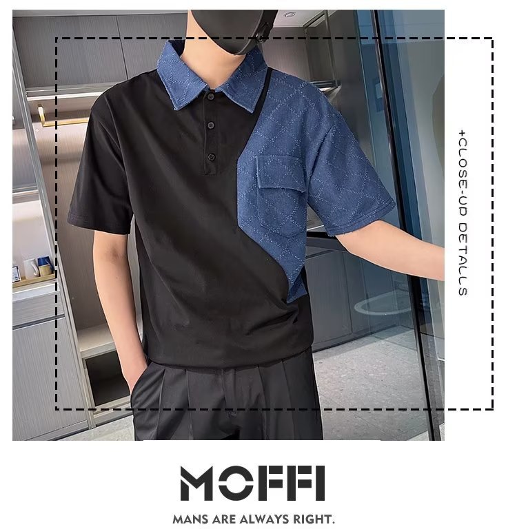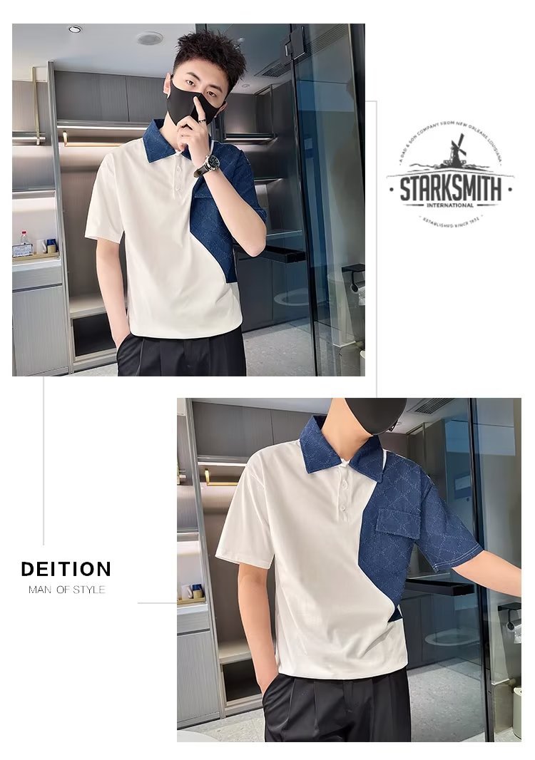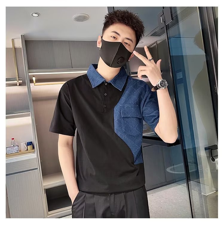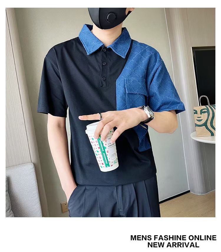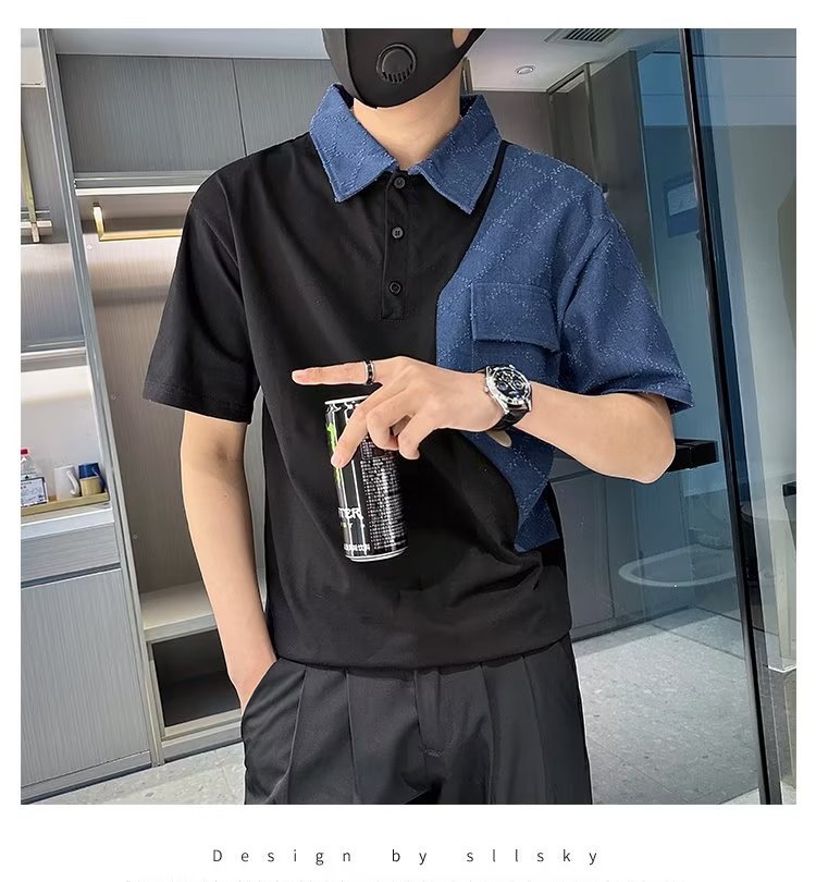Tendencia 2024 nueva moda social chico verano camiseta de manga corta camiseta masculina bordado camiseta de media manga solapa polo