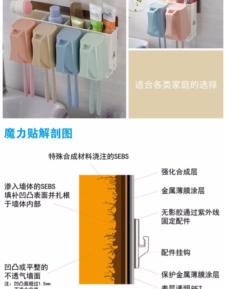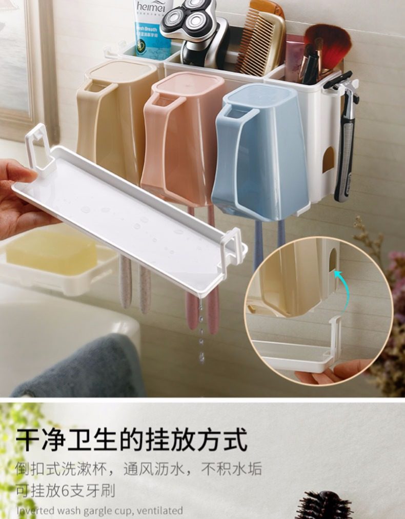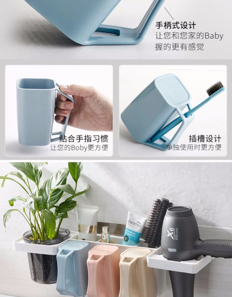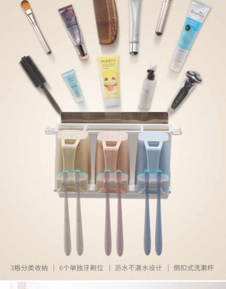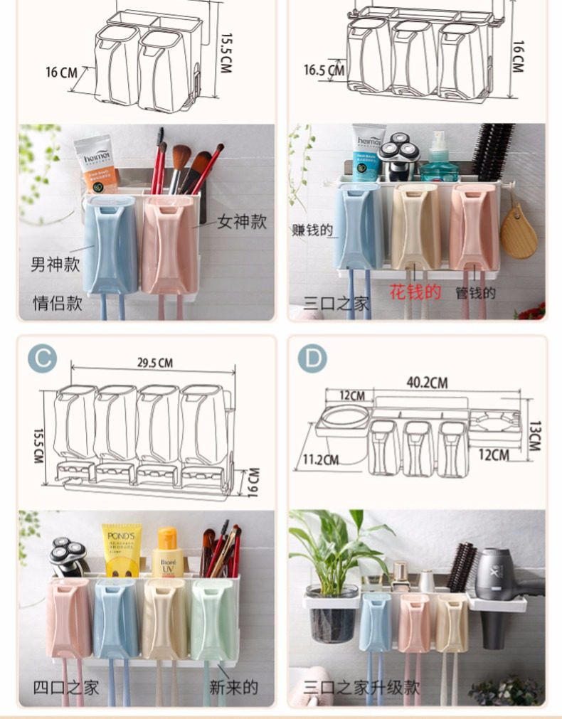 Estante de cepillo de dientes de baño, taza de enjuague bucal, taza de cepillo de dientes montada en la pared, pareja, soporte de cepillo de dientes sin perforación, juego de lavado
