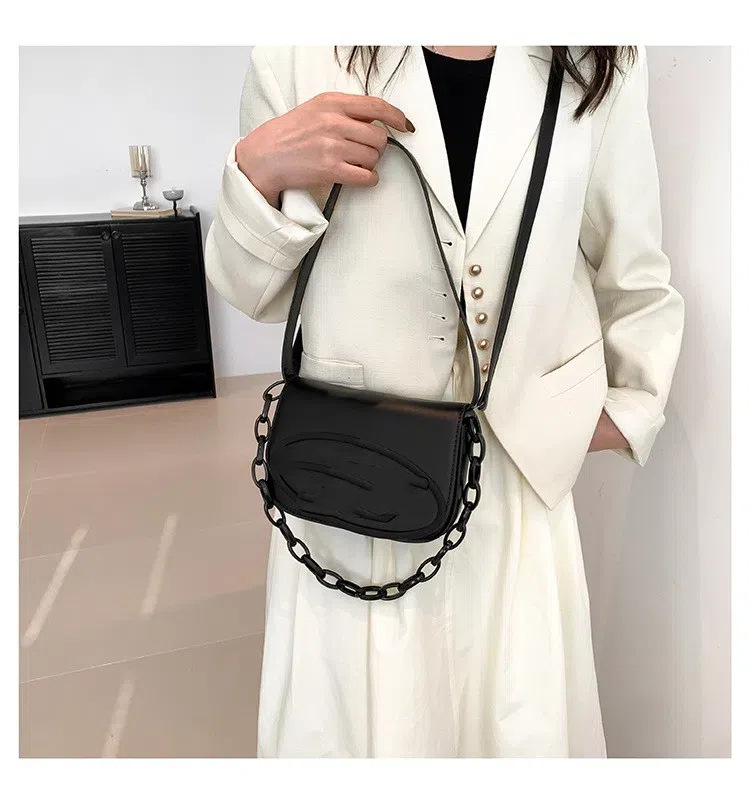 2024 nuevo bolso Dingdong de nicho de moda, bolso cuadrado pequeño negro, bolso de cuero suave, bolso de mujer de un solo hombro y axila de estilo occidental