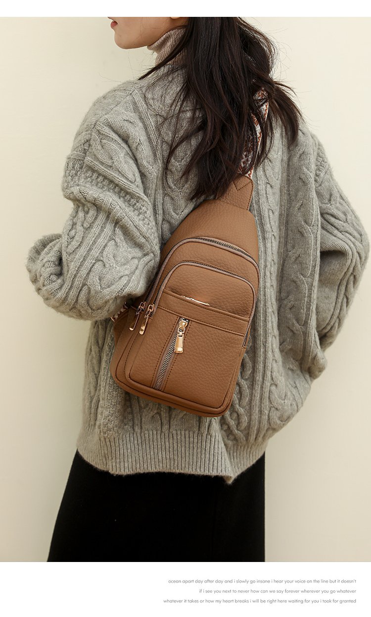 Nicho transfronterizo bolso de pecho inclinado bolso de cintura de moda de mujer bolso de hombro casual de cuero suave bolso de hombro letras de estilo universal