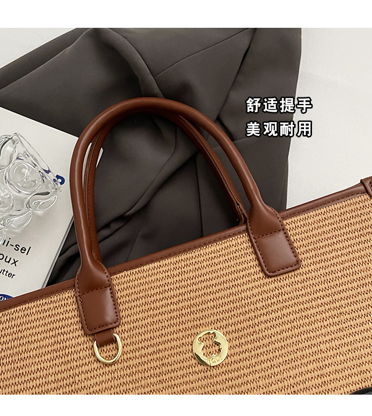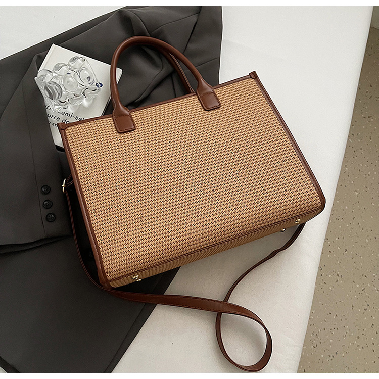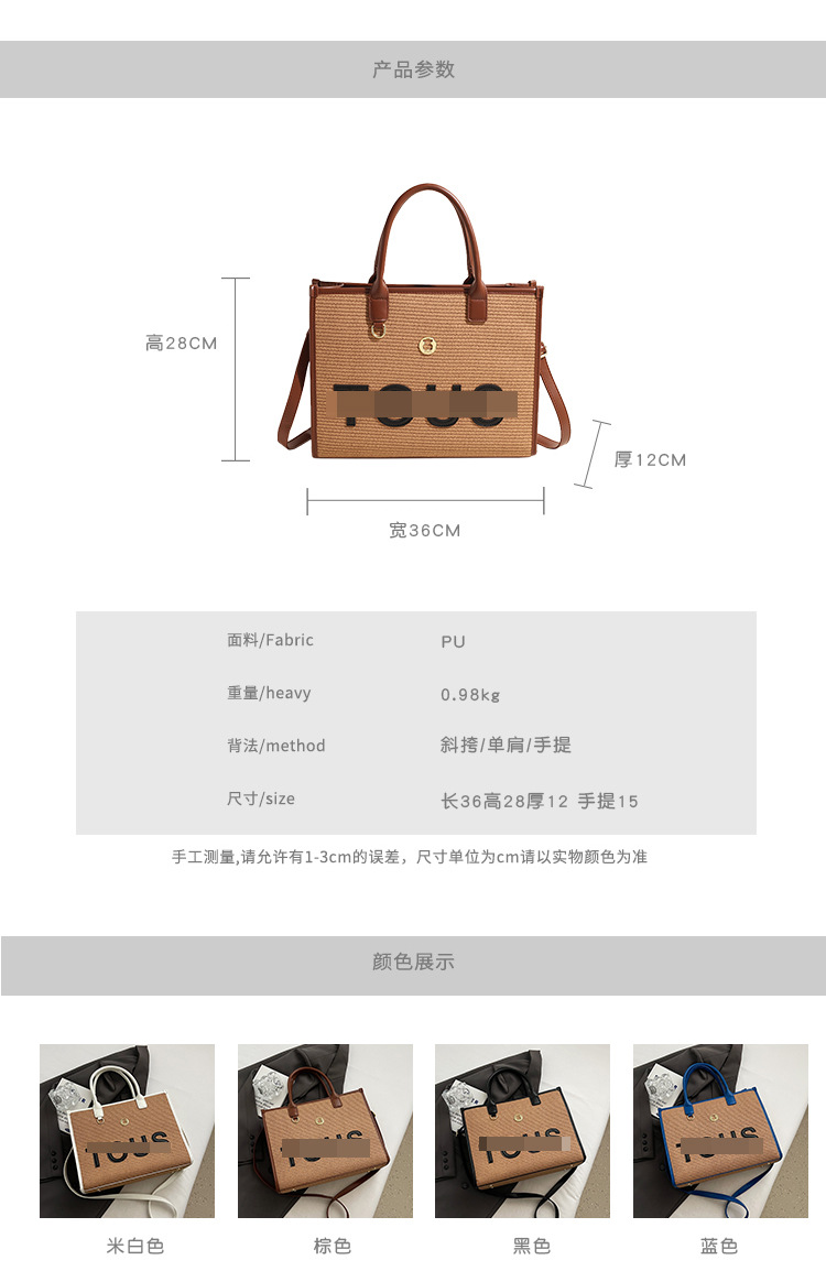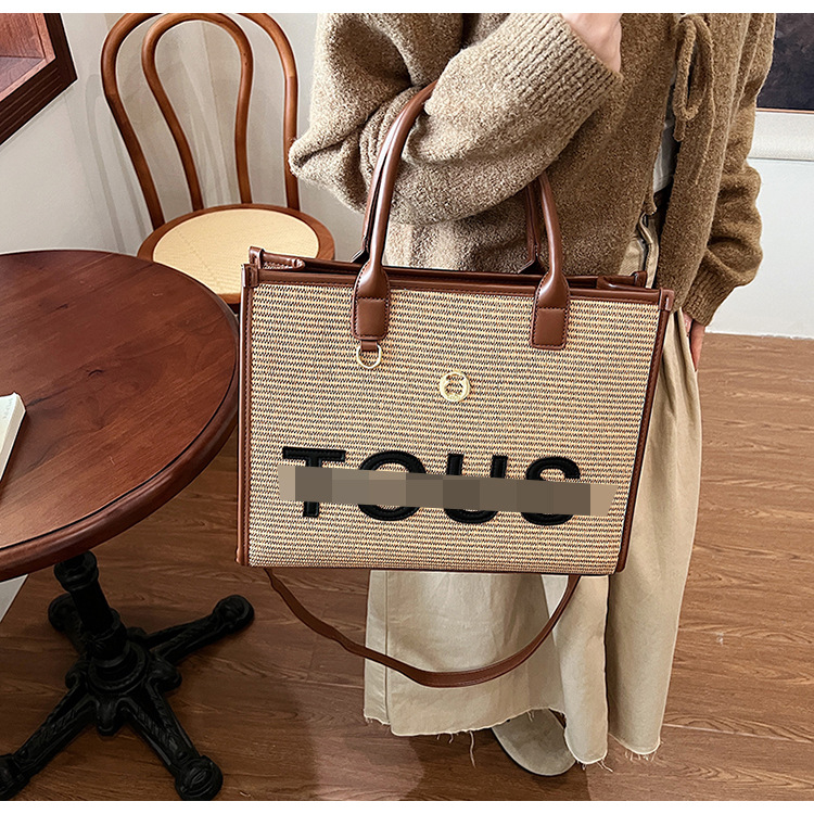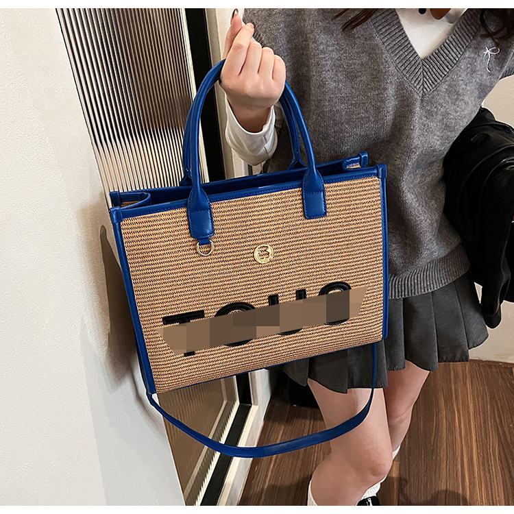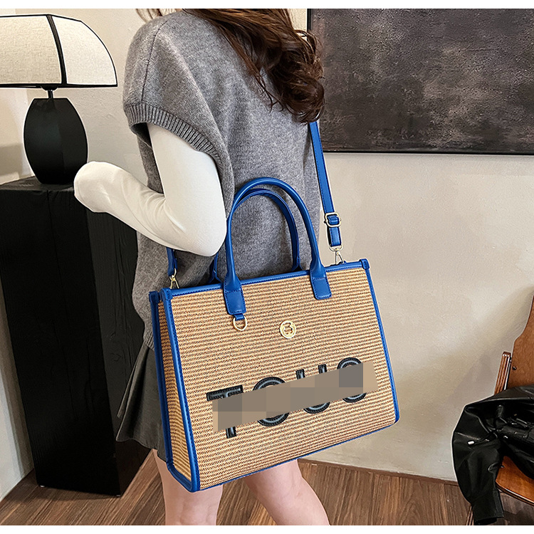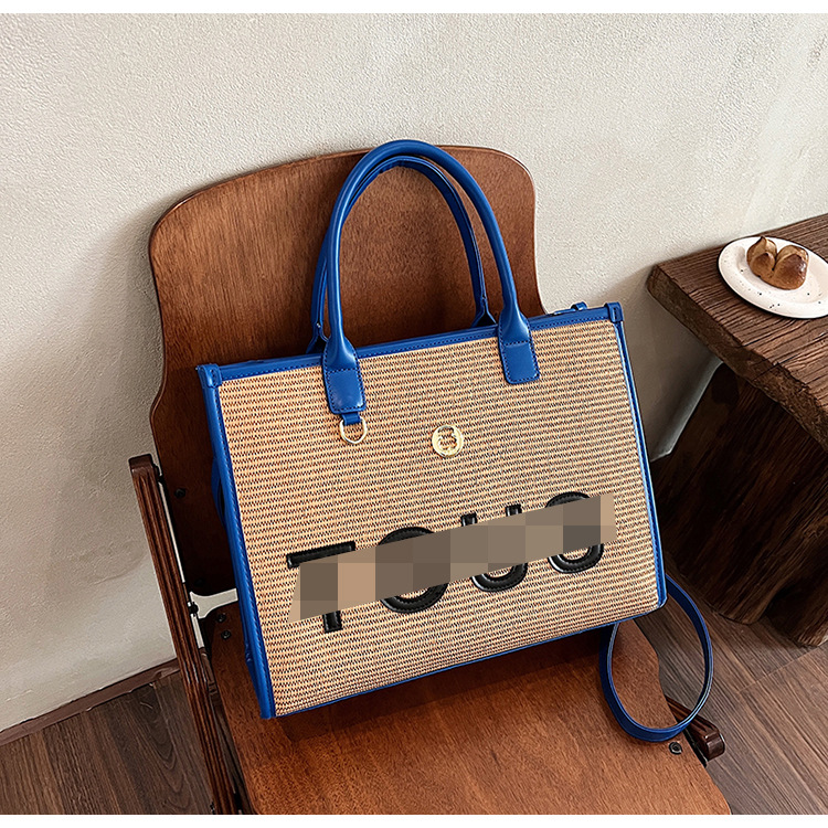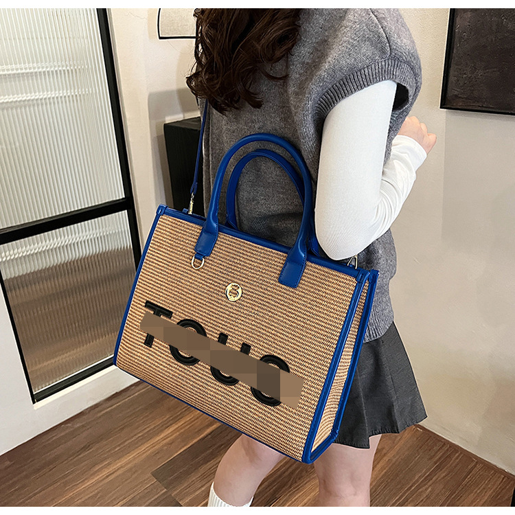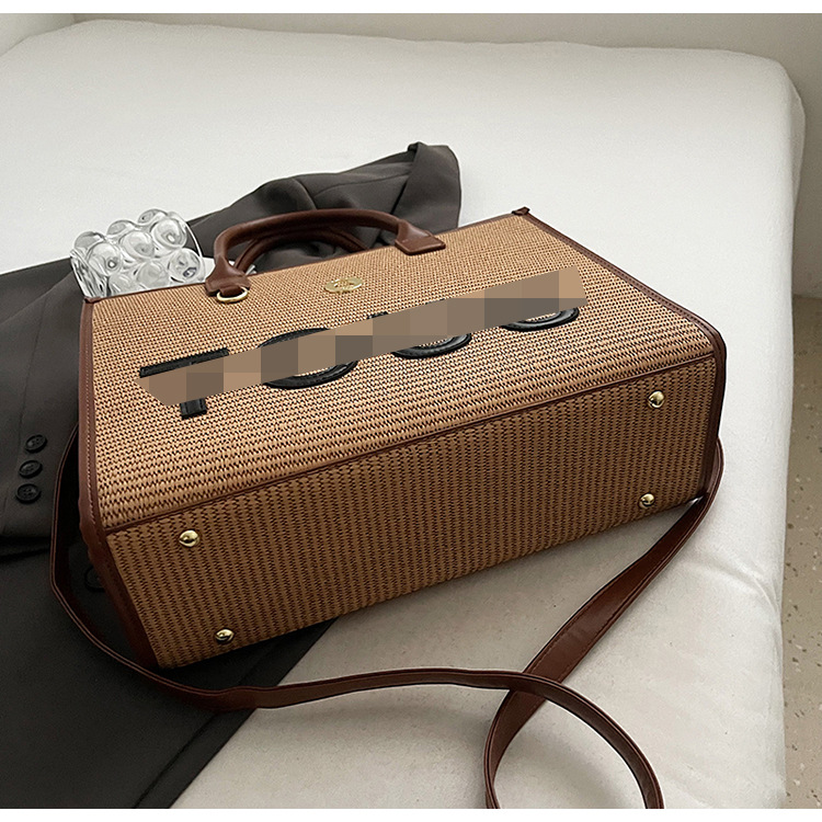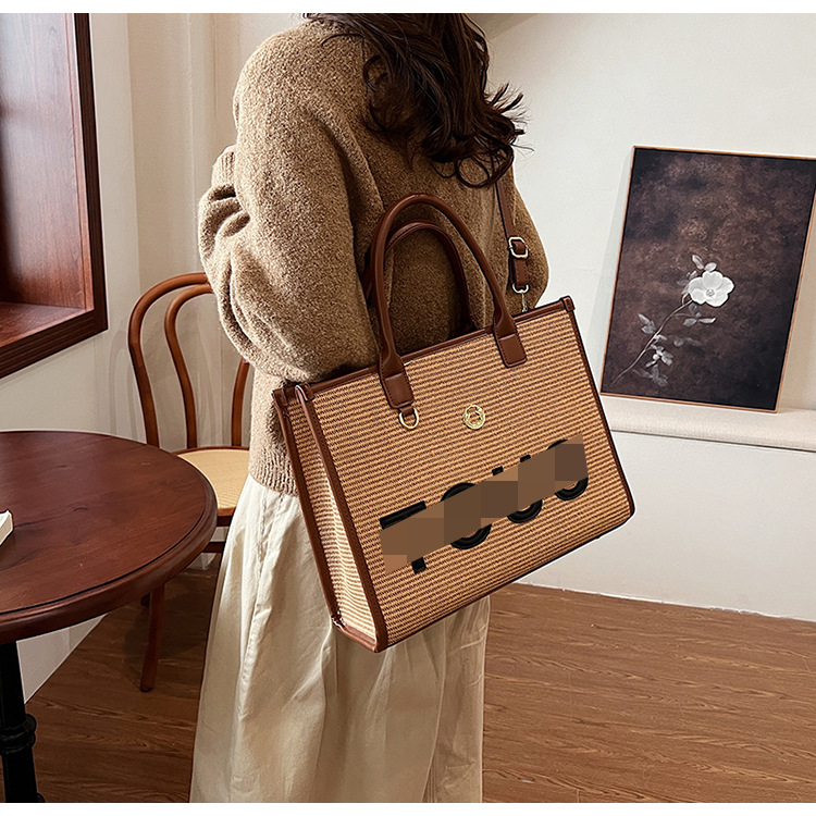Bolsa de paja para mujer 2024 nuevo bolso tejido portátil de diseño de estilo occidental de gran capacidad, bolso cuadrado pequeño con letras de color en contraste personalizado