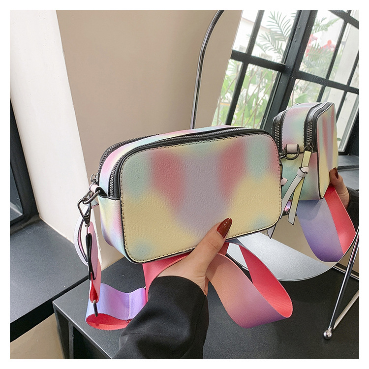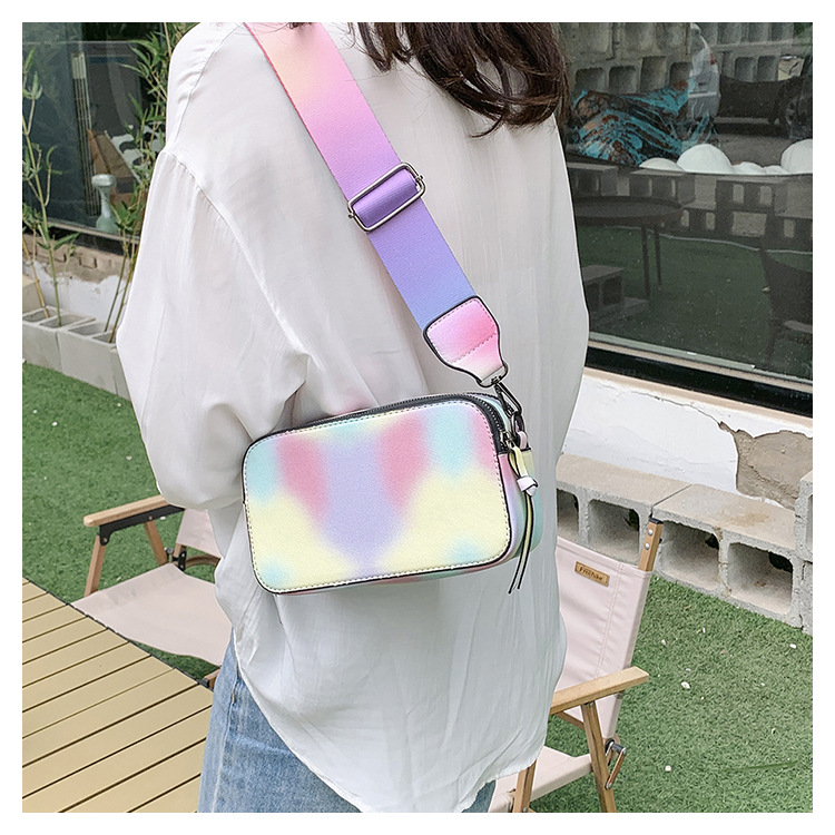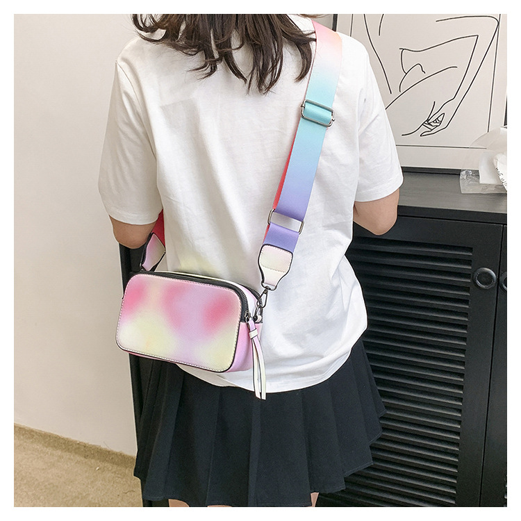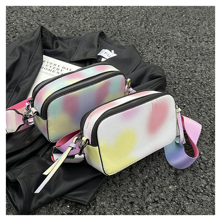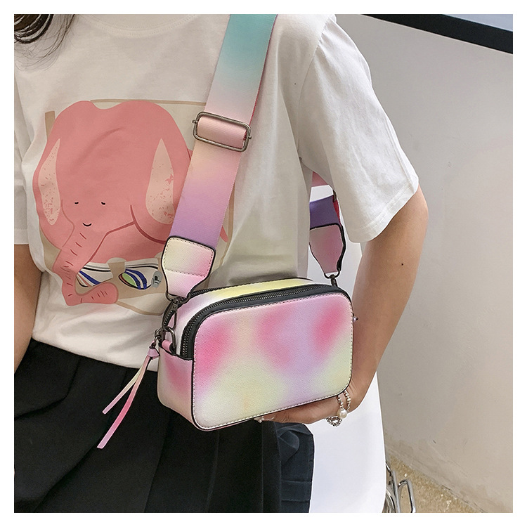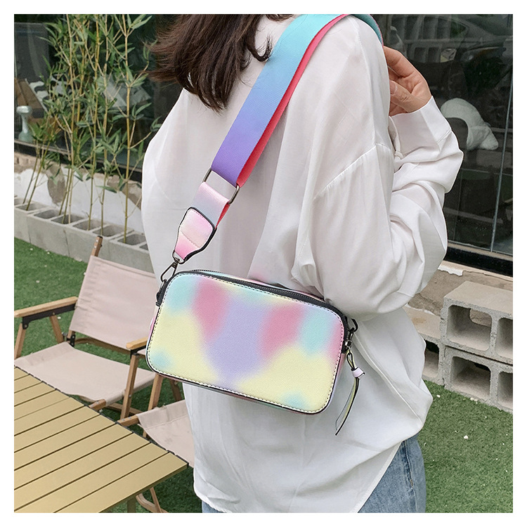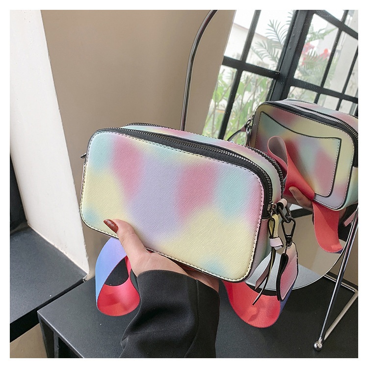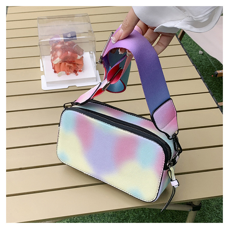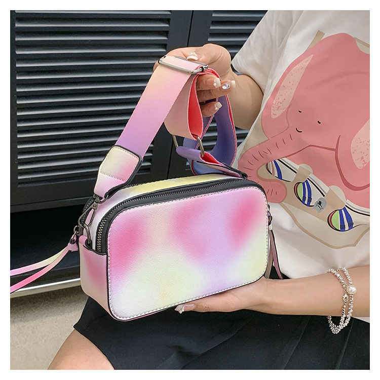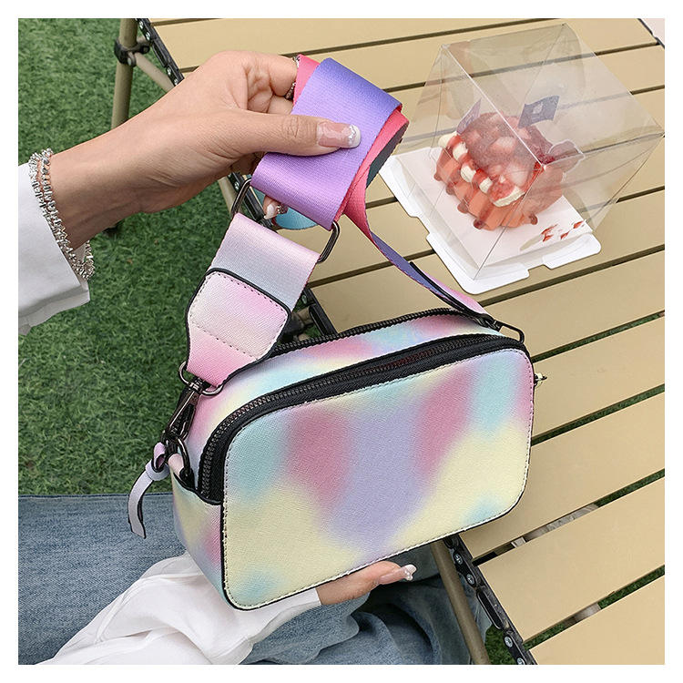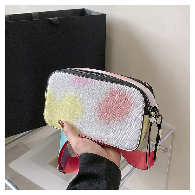 Bolso cuadrado pequeño de color de contraste de tendencia transfronteriza 2024 primavera y verano nuevo bolso de mensajero de banda ancha personalizado bolso de cámara de moda simple para mujer
