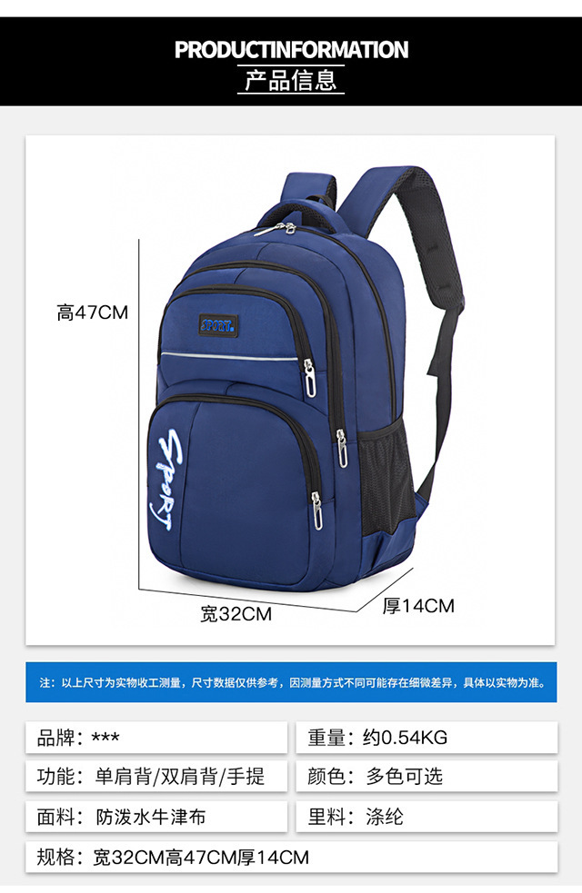 Mochila de moda de gran capacidad al por mayor de fábrica, mochila ligera y resistente al desgaste para estudiantes de secundaria y preparatoria, mochila de viaje de ocio