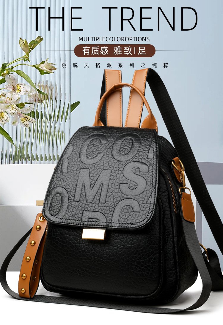 Comercio exterior al por mayor 2023 nueva versión coreana de la mochila de cuero suave para estudiantes de secundaria Mochila de computadora de gran capacidad de color sólido de moda