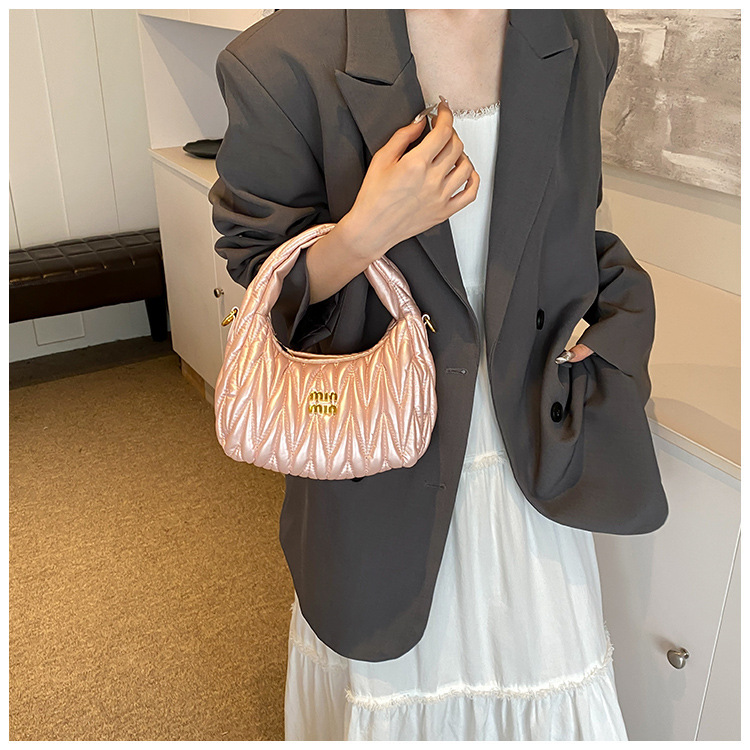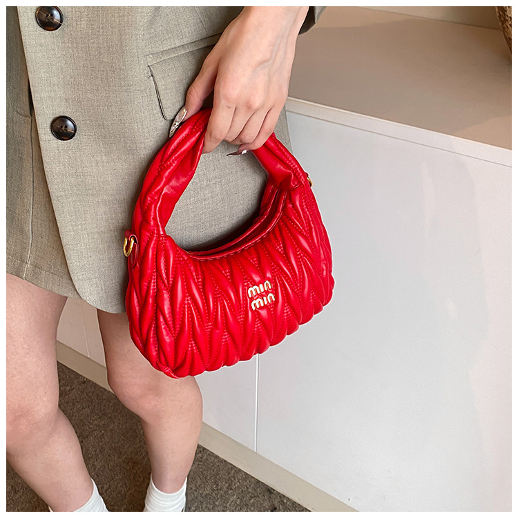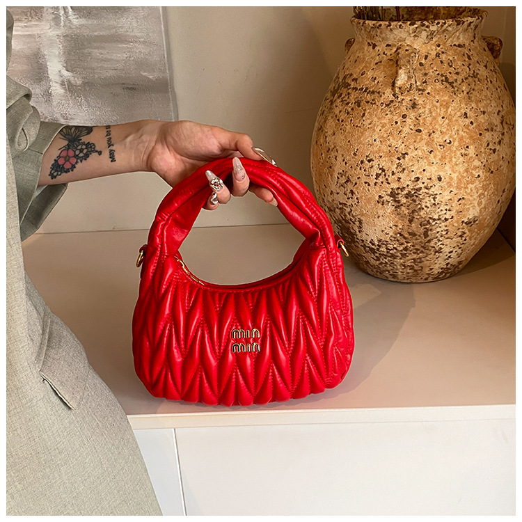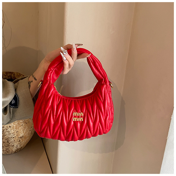 Bolsos de todo fósforo 2024 moda de verano textura plisada bolsa de axilas bolso retro ins bolso femenino de moda simple