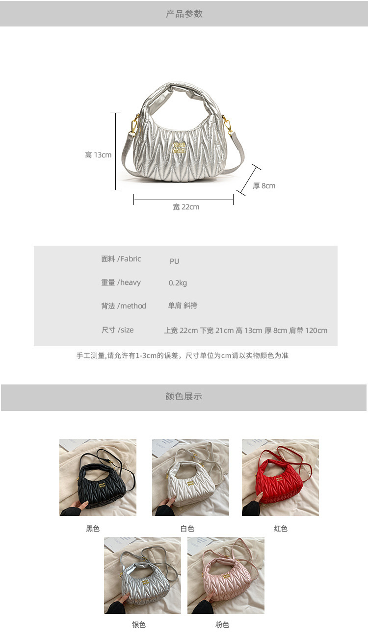 Versión coreana del bolso de axila de nicho 2025 primavera y verano nuevo bolso femenino casual bolso plisado neto del mismo estilo bolso de hombro marea