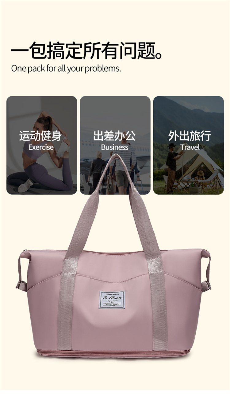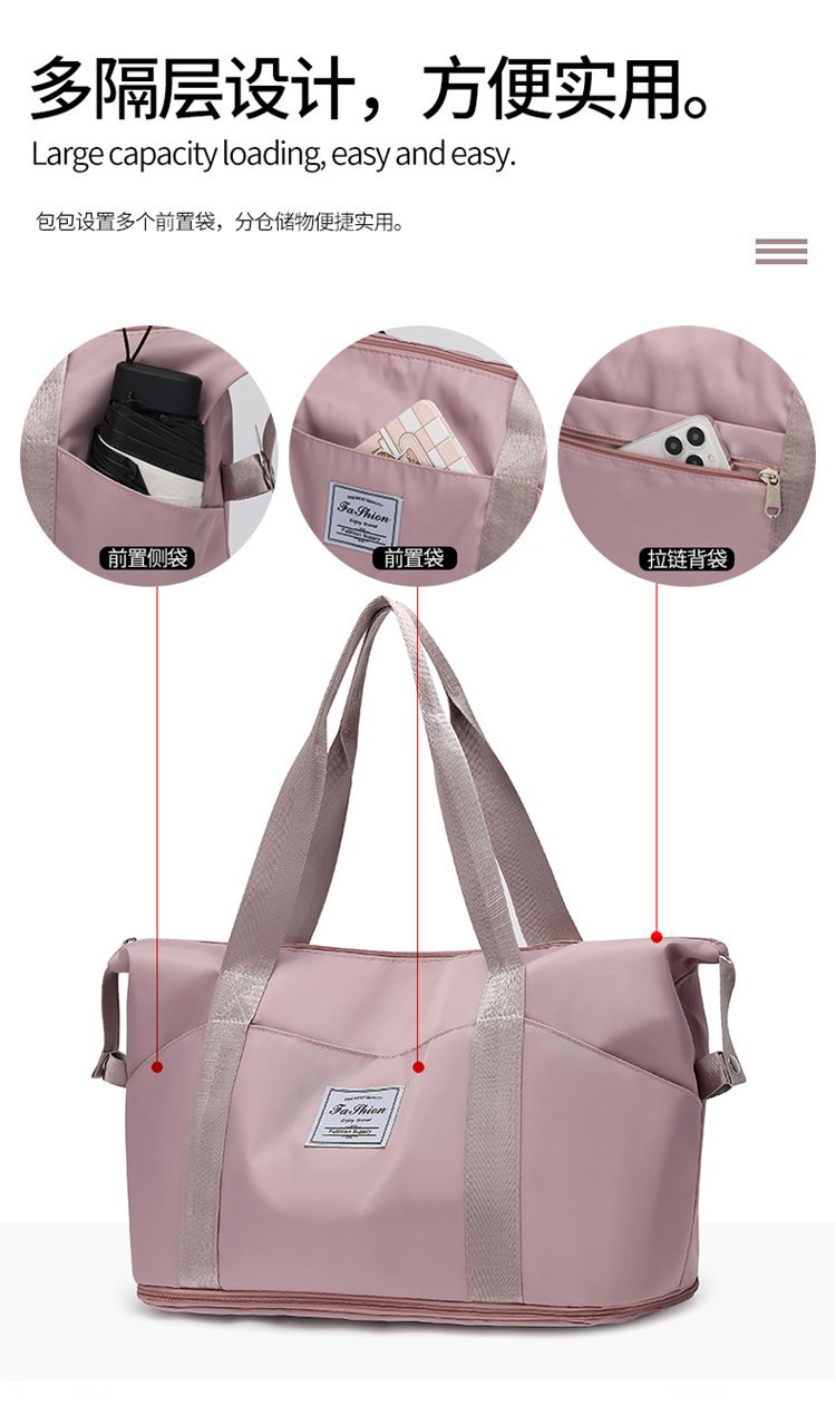 Bolso rosa Tote Bolso de viaje portátil de gran capacidad Bolso deportivo portátil Bolso de equipaje de gran valor de estilo occidental de corta distancia
