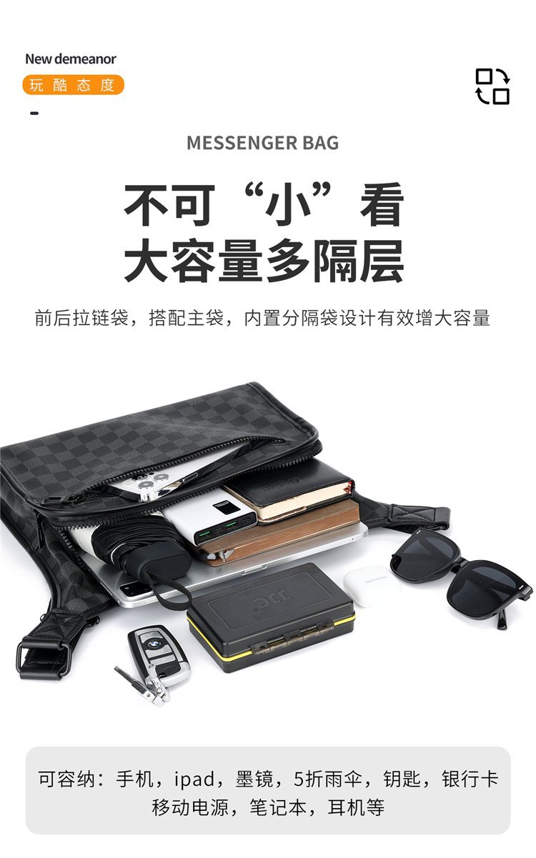 2025 primavera nuevo estilo bolso de pecho de moda para hombres simple y moderno bolso de mensajero de conducción de gran capacidad para hombres de moda