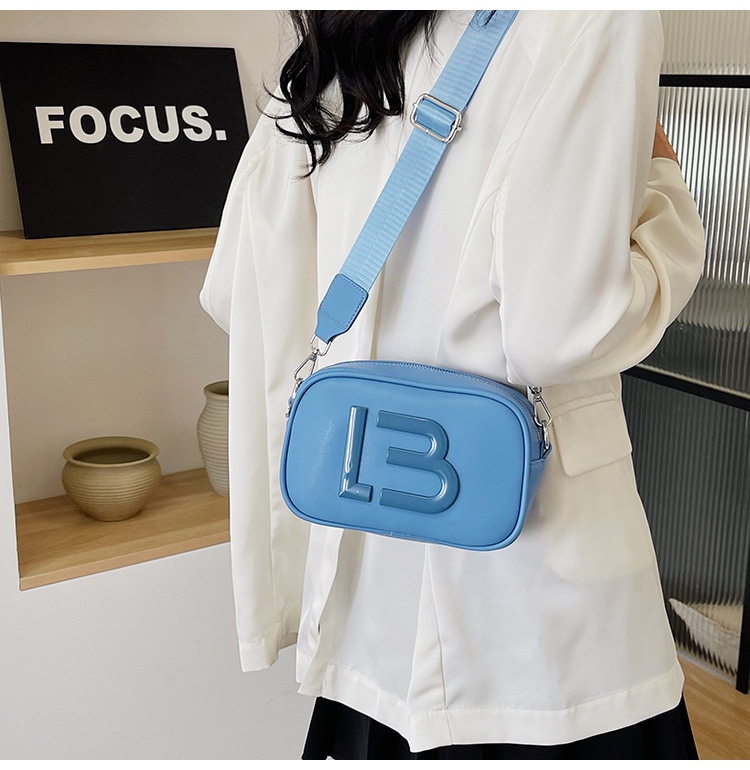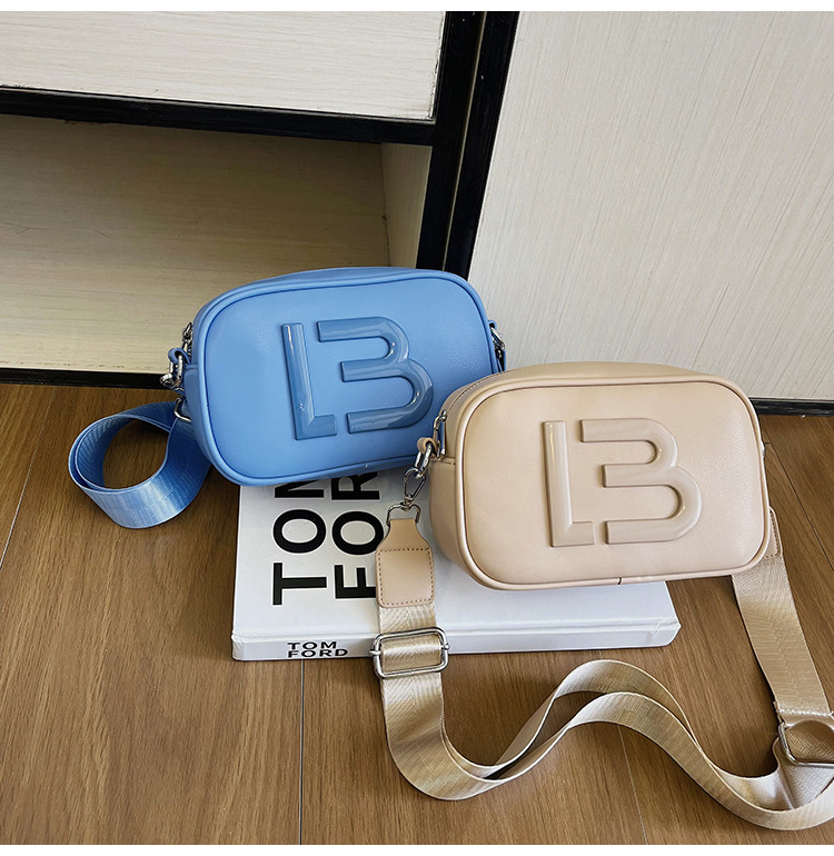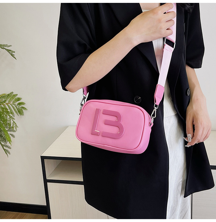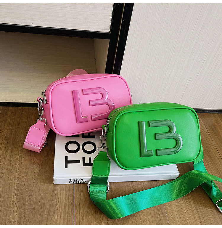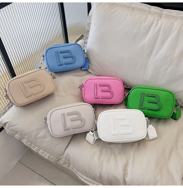 Bolsos transfronterizos bolsos de mujer 2024 nuevo bolso de mensajero de un solo hombro con letras de color caramelo simple y de moda, bolso de cámara, bolso cuadrado pequeño