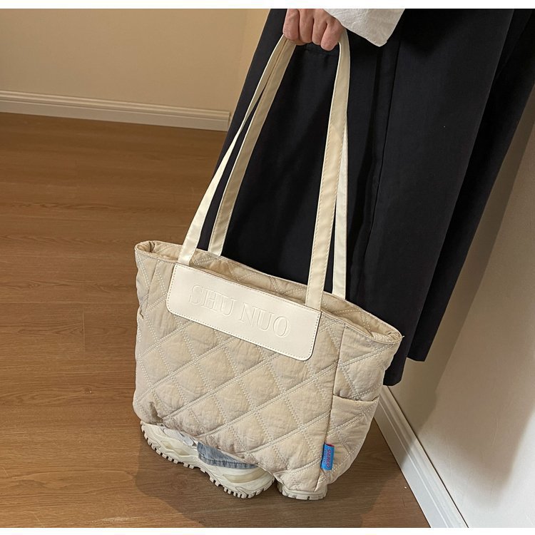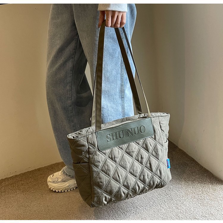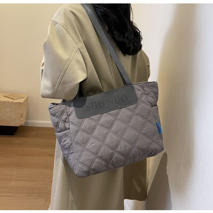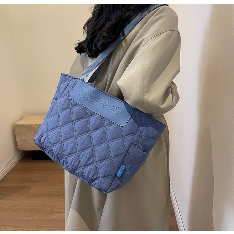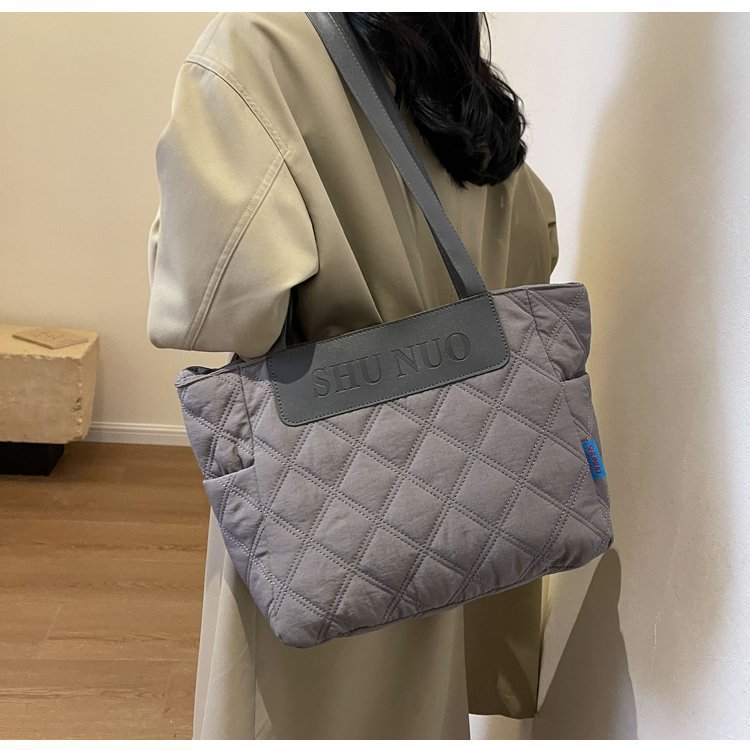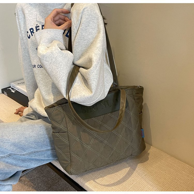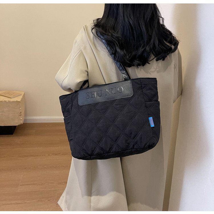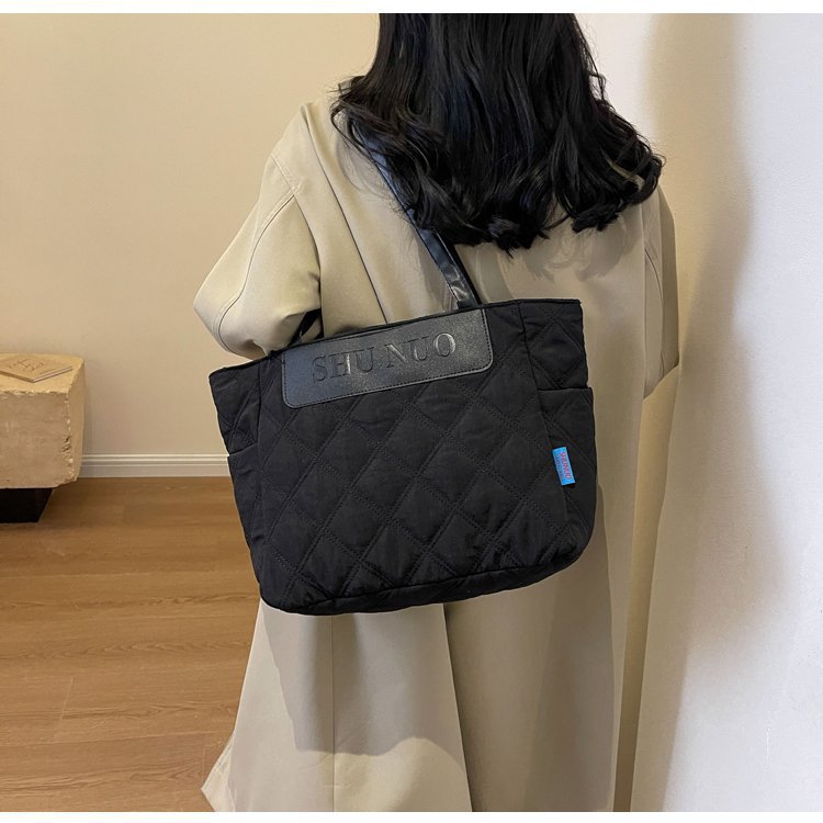 Bolso de tela de nylon bolso de mujer gran capacidad otoño / invierno 2024 nuevo bolso de hombro casual bolso de viaje de diamante