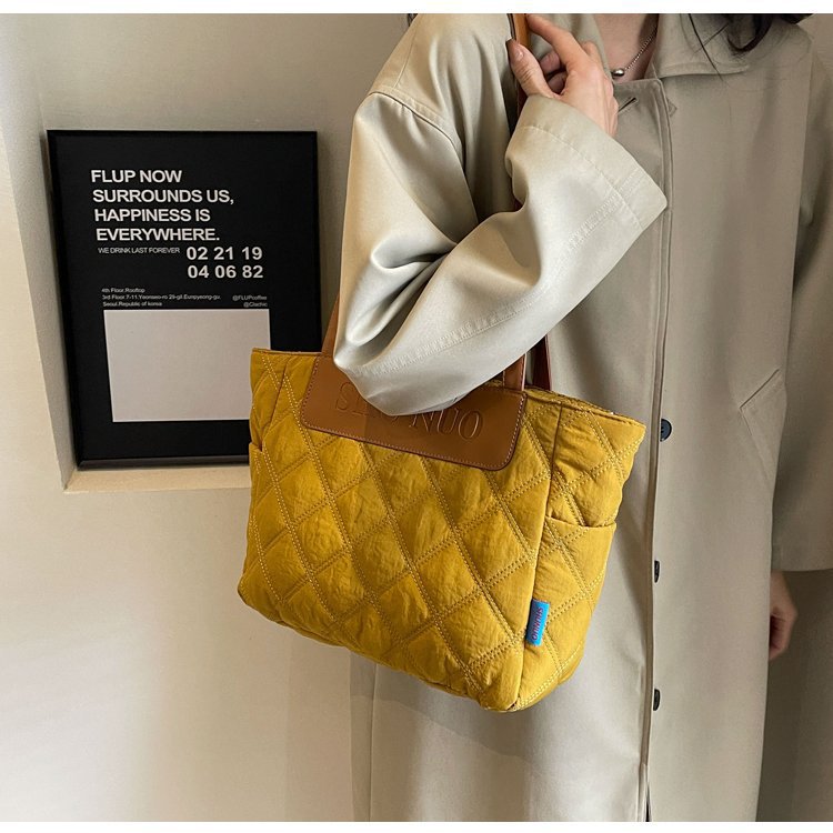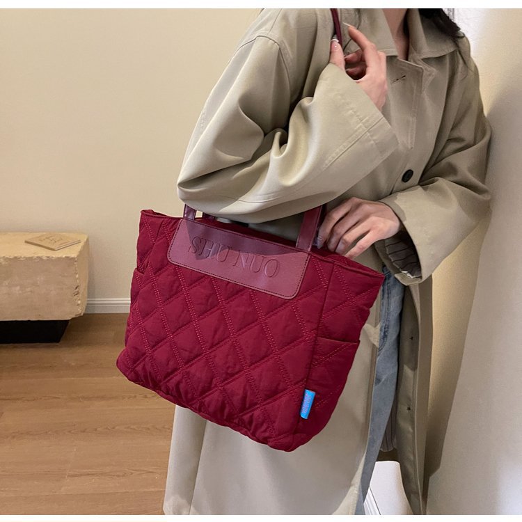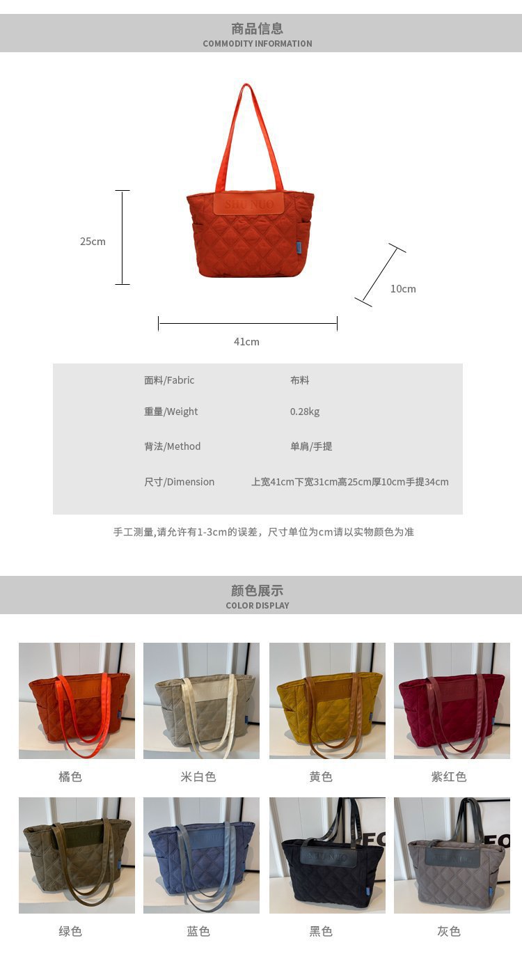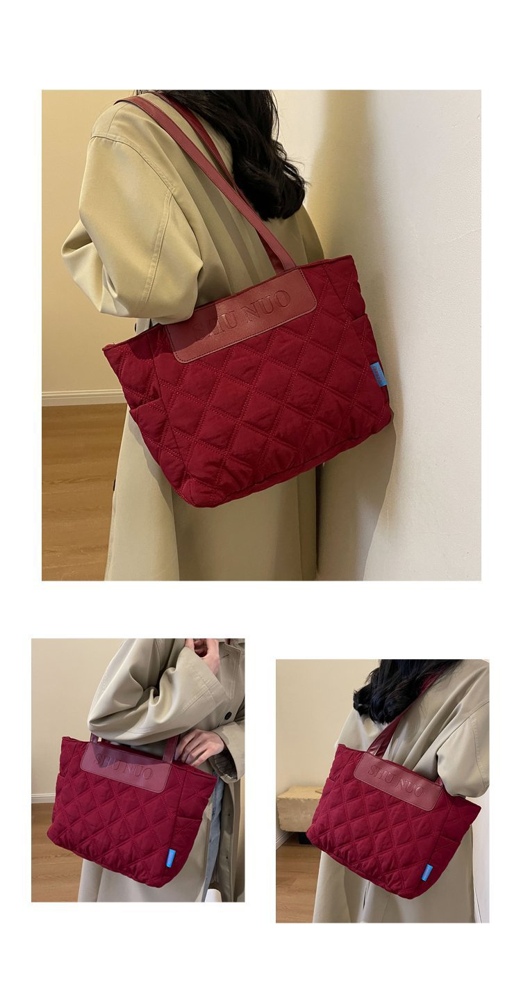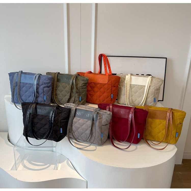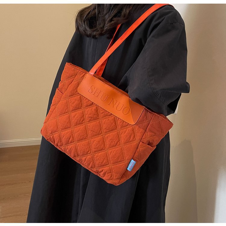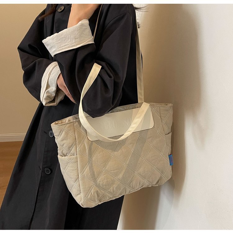 Bolso de tela de nylon bolso de mujer gran capacidad otoño / invierno 2024 nuevo bolso de hombro casual bolso de viaje de diamante
