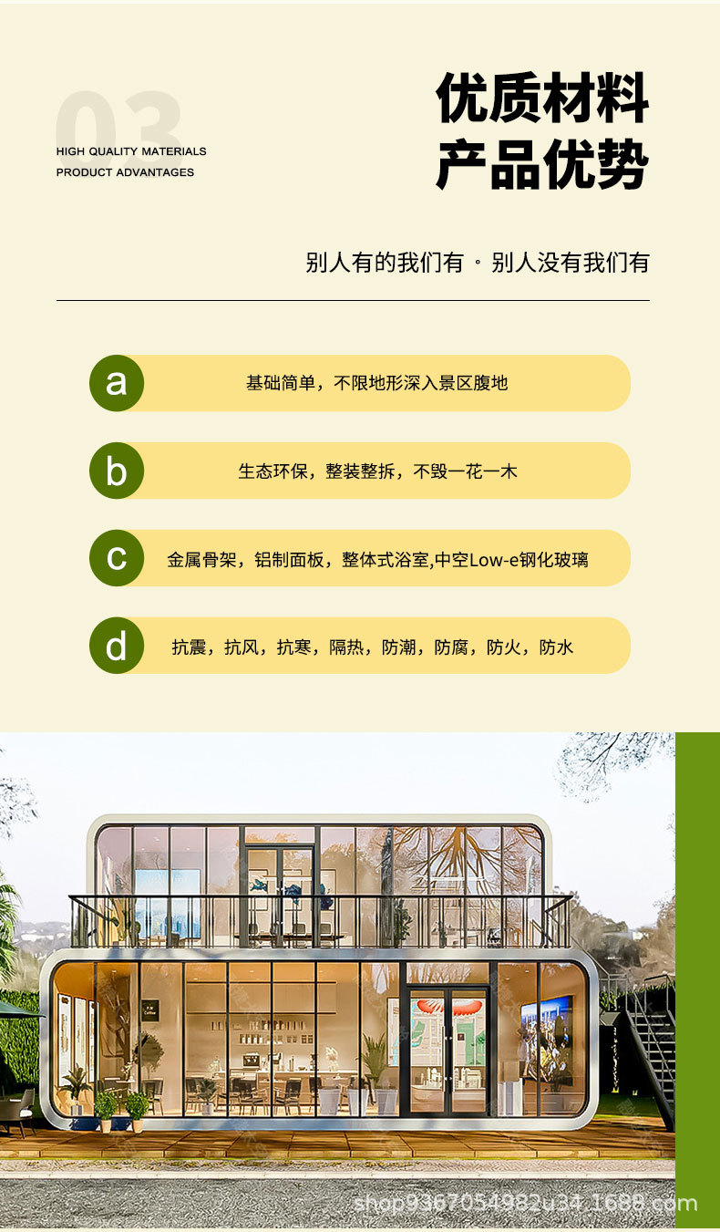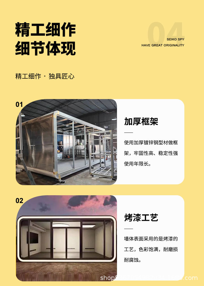 Casa de tablero de contenedores con decoración cápsula espacial inteligente Sunshine House Net Red B & B Casa de contenedores de estructura de acero ligero