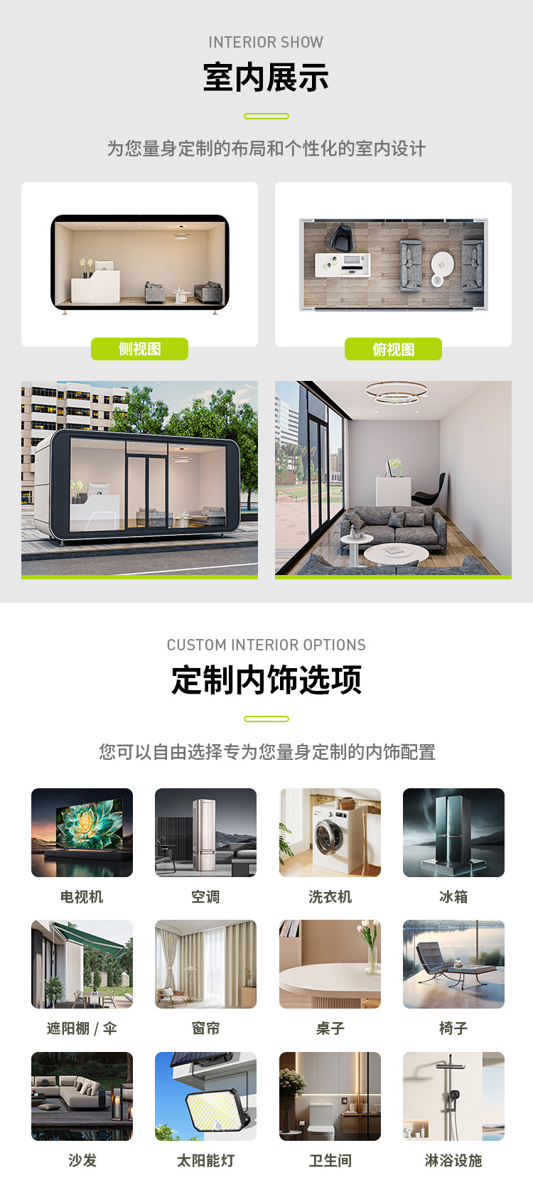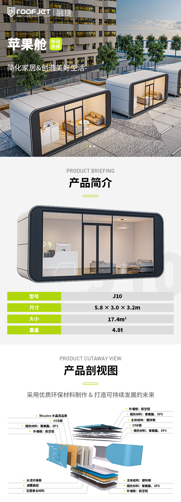 | Especificaciones | Cápsula espacial R6(1 ㎡),Cápsula espacial R8(1 ㎡),Cápsula espacial R8X(1 ㎡),Cápsula espacial R9(1 ㎡),Cápsula espacial R10(1 ㎡),Cabina Apple J9(1 ㎡),Cabina Apple J11(1 ㎡) |
