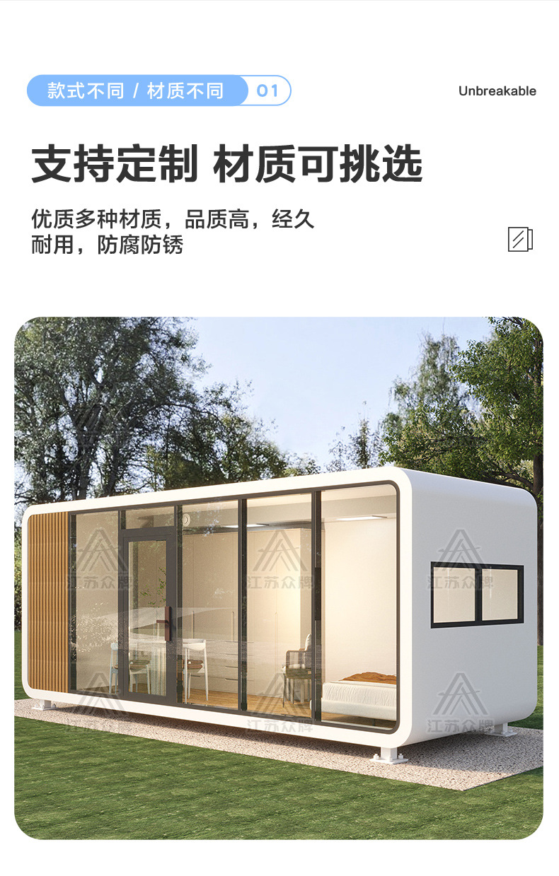 Montado espacio cápsula edificio vista online celebridad lujo manzana cabina B & B móvil campamento rv fabricante