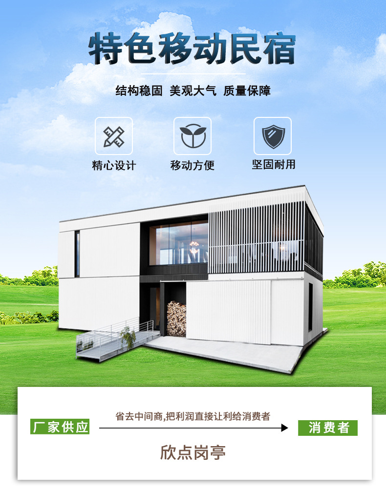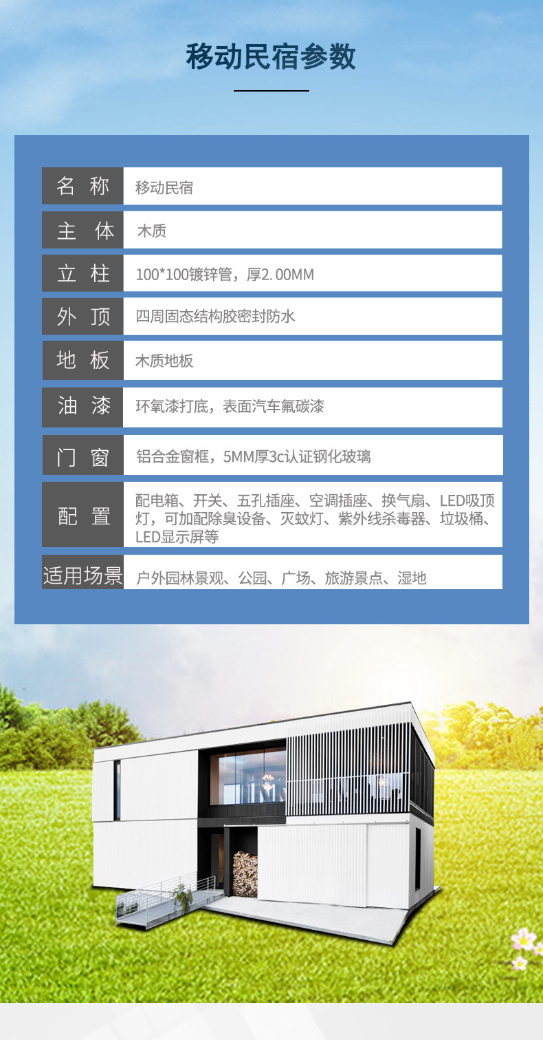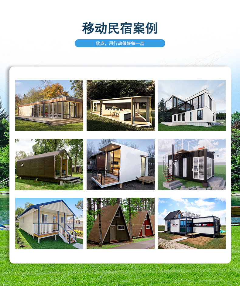 Hotel móvil acabado esqueleto de acero inoxidable casa de vacaciones de estilo europeo al aire libre pintoresco casa de familia