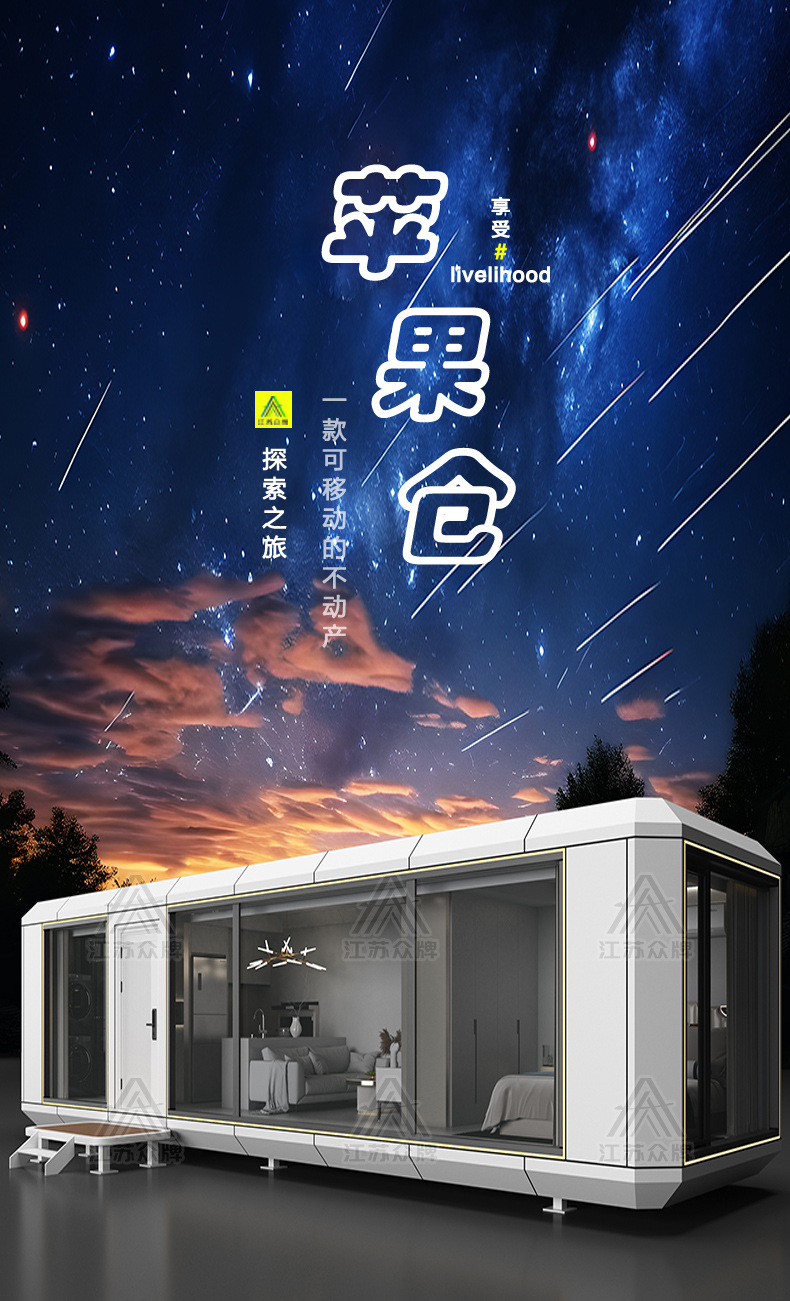 Cabina espacial Habitación móvil Residente B & B Hotel escénico al aire libre Habitación de cielo estrellado Apple Warehouse Red Container Sunshine Room
