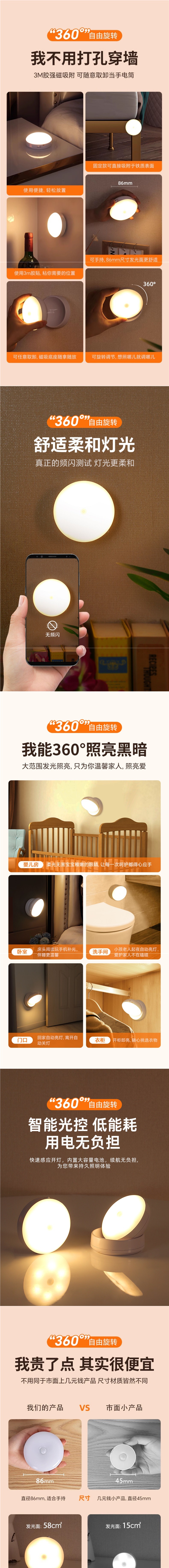 Nueva Luz de inducción del gabinete del cuerpo LED Estilo nórdico noche inteligente luz de noche inalámbrica luz del Gabinete de inducción