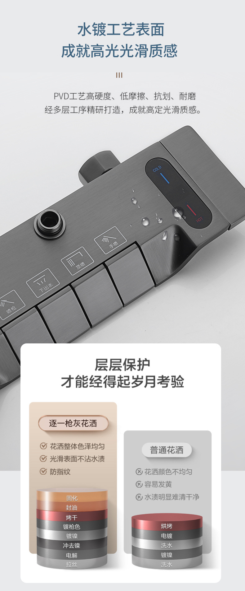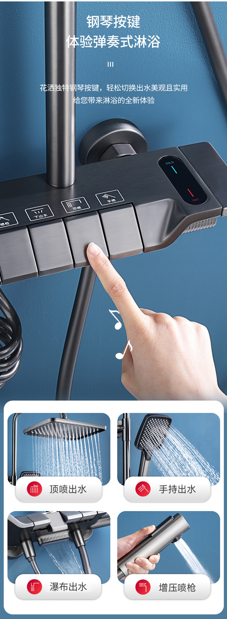 | Especificaciones | Pistola de piano gris de cuatro engranajes caliente y fría,Pistola gris pantalla digital piano botón cascada ducha,Galvanoplastia de plata caliente y fría ducha de cuatro bloques,Pistola de ducha de cuatro bloques caliente y fría gris,Cabezal de ducha de cuatro bloques caliente y frío blanco lechoso |