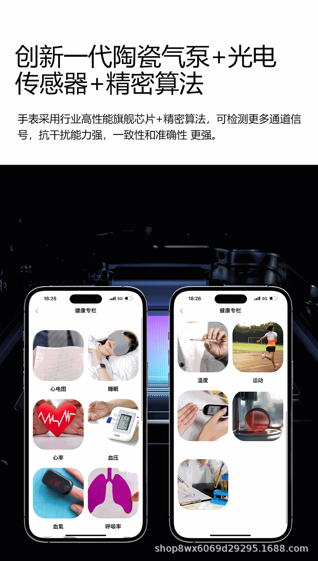 | Función | Impermeable,Toma una foto,Paso a paso,Monitorización de la frecuencia cardíaca,Medición de la presión arterial,Entretenimiento social,Llamadas por Bluetooth,Recordatorio inteligente,Selfie con control remoto,Monitoreo del sueño |