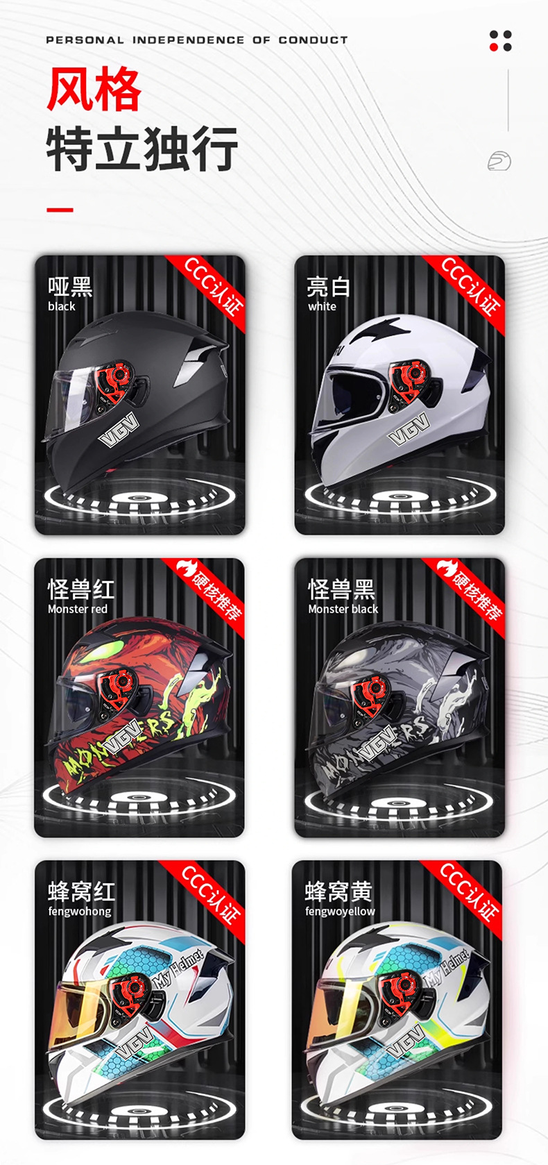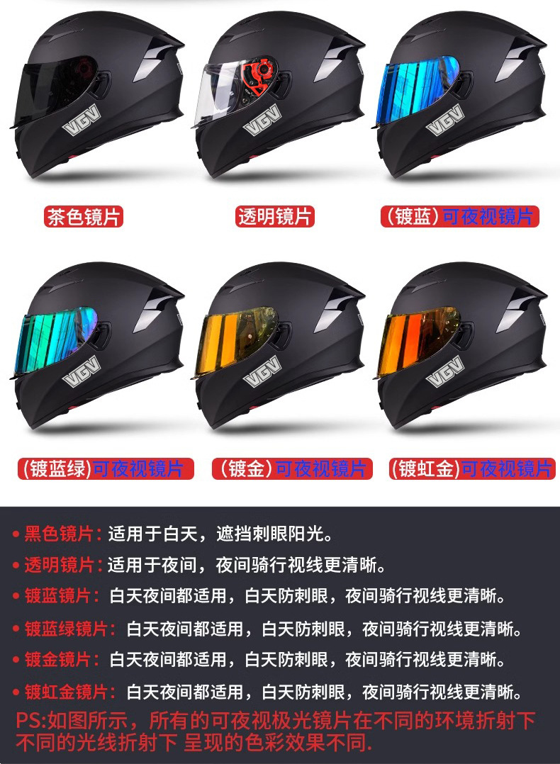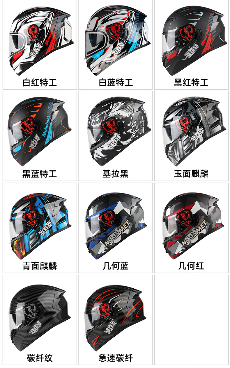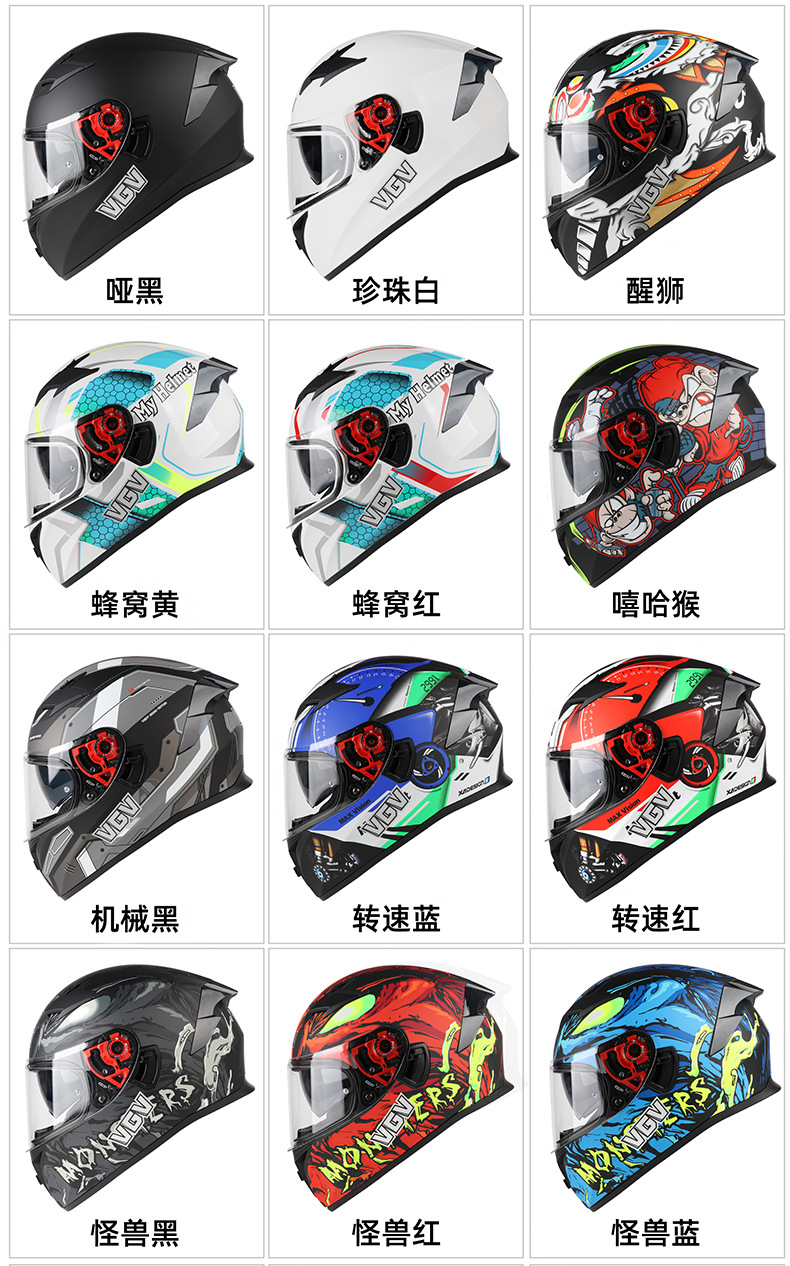 | Colores | Negro tonto,Blanco perla,Amarillo de panal blanco brillante,Rojo de panal blanco brillante,Agente rojo blanco,Agente blanco y azul,Agente negro y rojo,Agente azul negro,Velocidad azul,Velocidad roja,Monstruo negro,Monstruo rojo,Azul monstruo,Kira,Rojo geométrico,Azul geométrico,Rojo de panal negro brillante,Amarillo de panal negro brillante,Unicornio de cara verde,Unicornio de cara de jade,Mono hip-hop,Danza del león,Negro mecánico,Fibra de carbono negro brillante,Fibra de carbono rápida,Lente de té negro de casco completo con transparente,La lente chapada en oro con casco completo puede ser de visión nocturna con transparente,La lente de casco completo chapada en oro arco iris puede ser de visión nocturna con transparente,La lente de casco completo chapada en azul puede ser de visión nocturna con transparente,Casco completo chapado en lentes azul y verde para visión nocturna con transparente,Lente de casco completo bañado en plata con transparente,Paquete Bluetooth integrado con casco completo,Paquete Bluetooth externo de casco completo,Paquete Bluetooth integrado de lentes chapadas en color con casco completo con transparente,Paquete Bluetooth externo de lente chapada en color con casco completo con transparente,Caja de cola negra tonta de un solo casco 45L,Caja de cola de calcomanía de un solo casco 45L Notas de pedido Color de la caja de cola del casco |