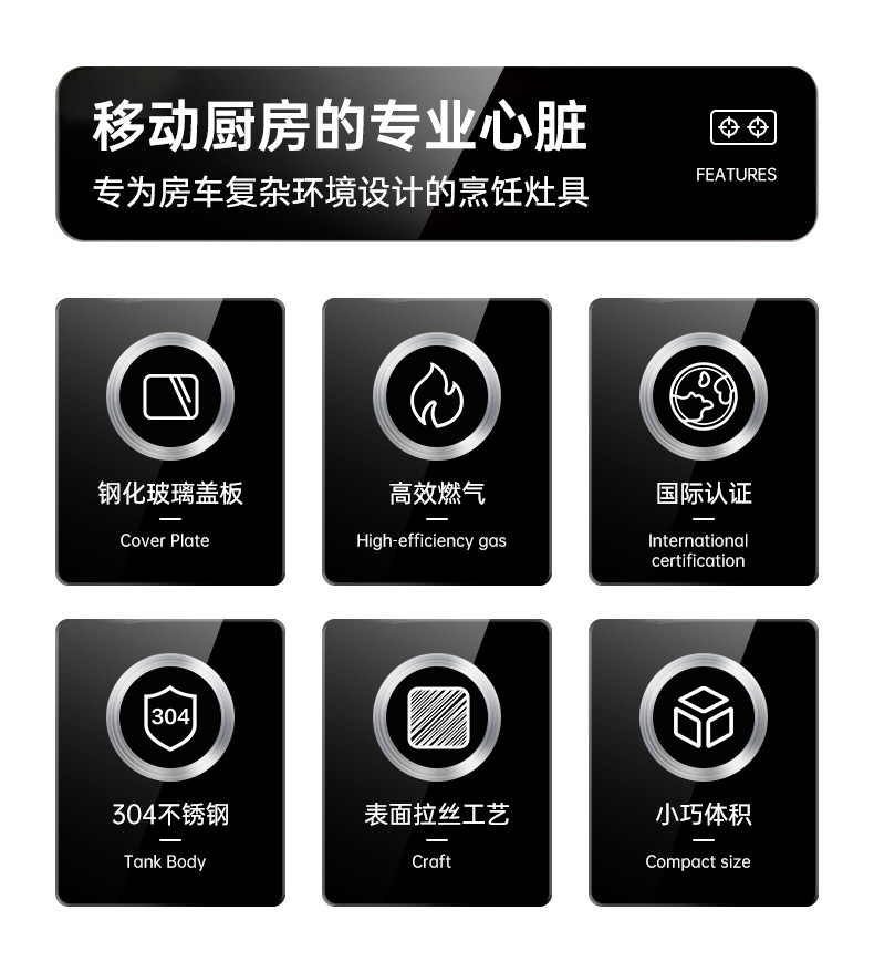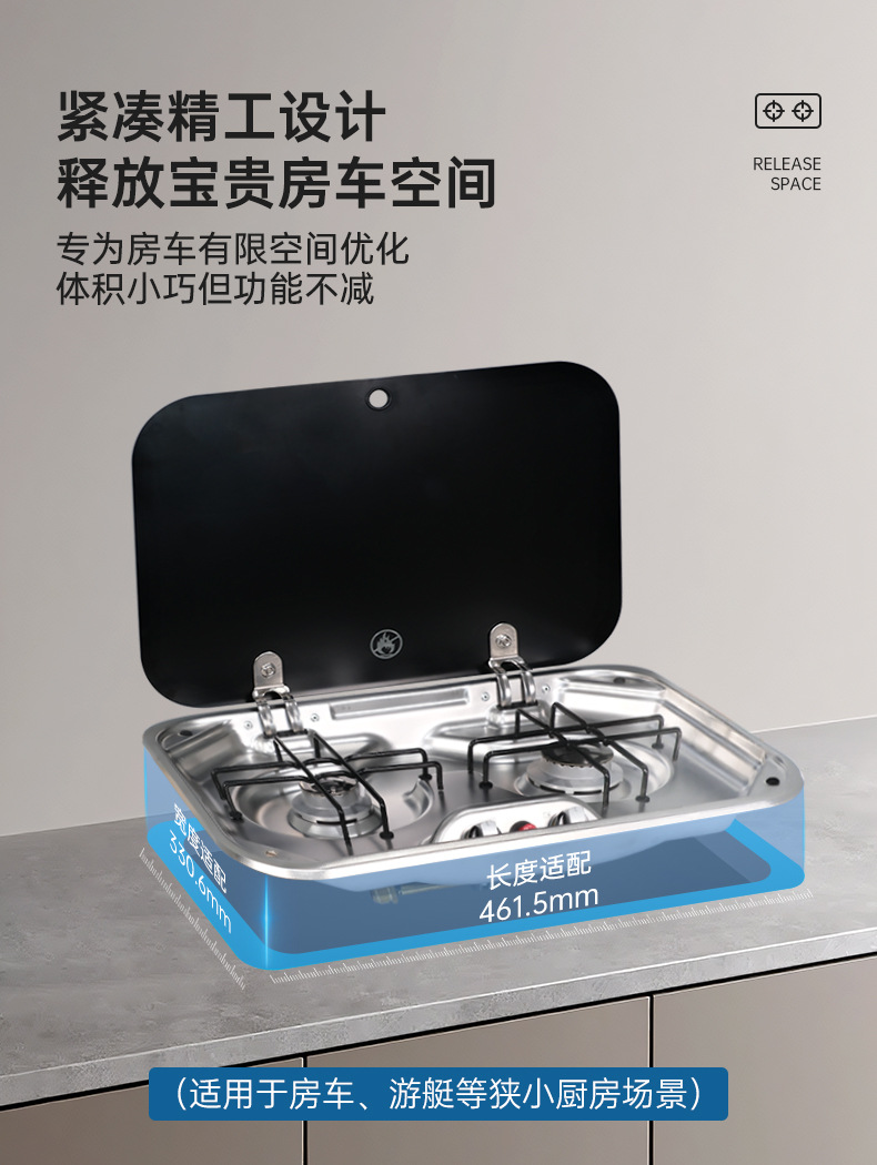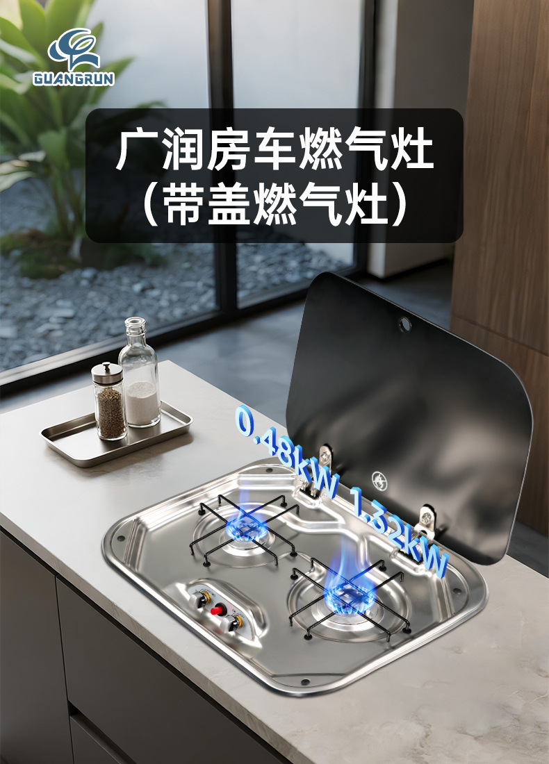 Ventas directas de fábrica Utensilios de cocina Guangrun RV con tapa Estufa de gas Yate Estufa de gas RV Accesorios de cocina y baño GR-587