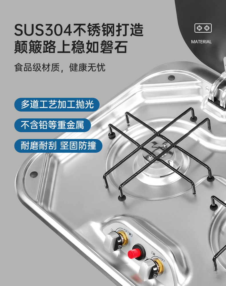 Horno de hierro fundido de acero en ángulo transfronterizo Estufa de gas comercial Estufa desmontable Camping portátil al aire libre Estufa doble de hierro fundido al por mayor