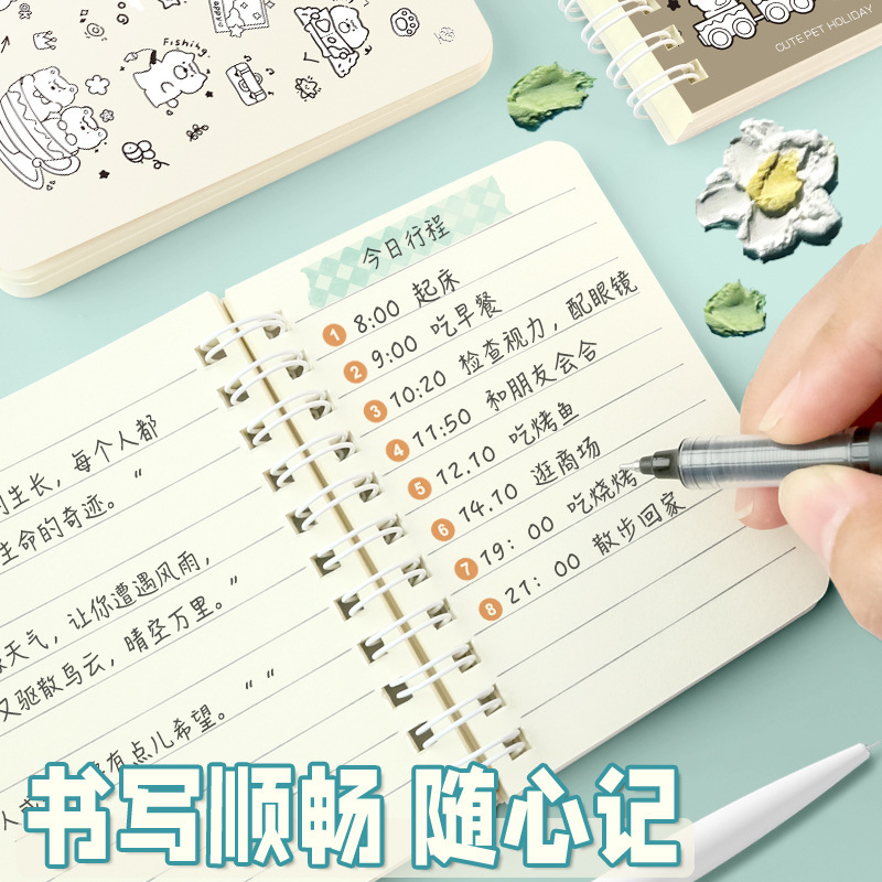 Gato con bobina de bloqueo lindo dibujo animado A7 cuaderno de cuadernos de cuadernos para estudiantes de primaria aprendiendo papelería al por mayor
