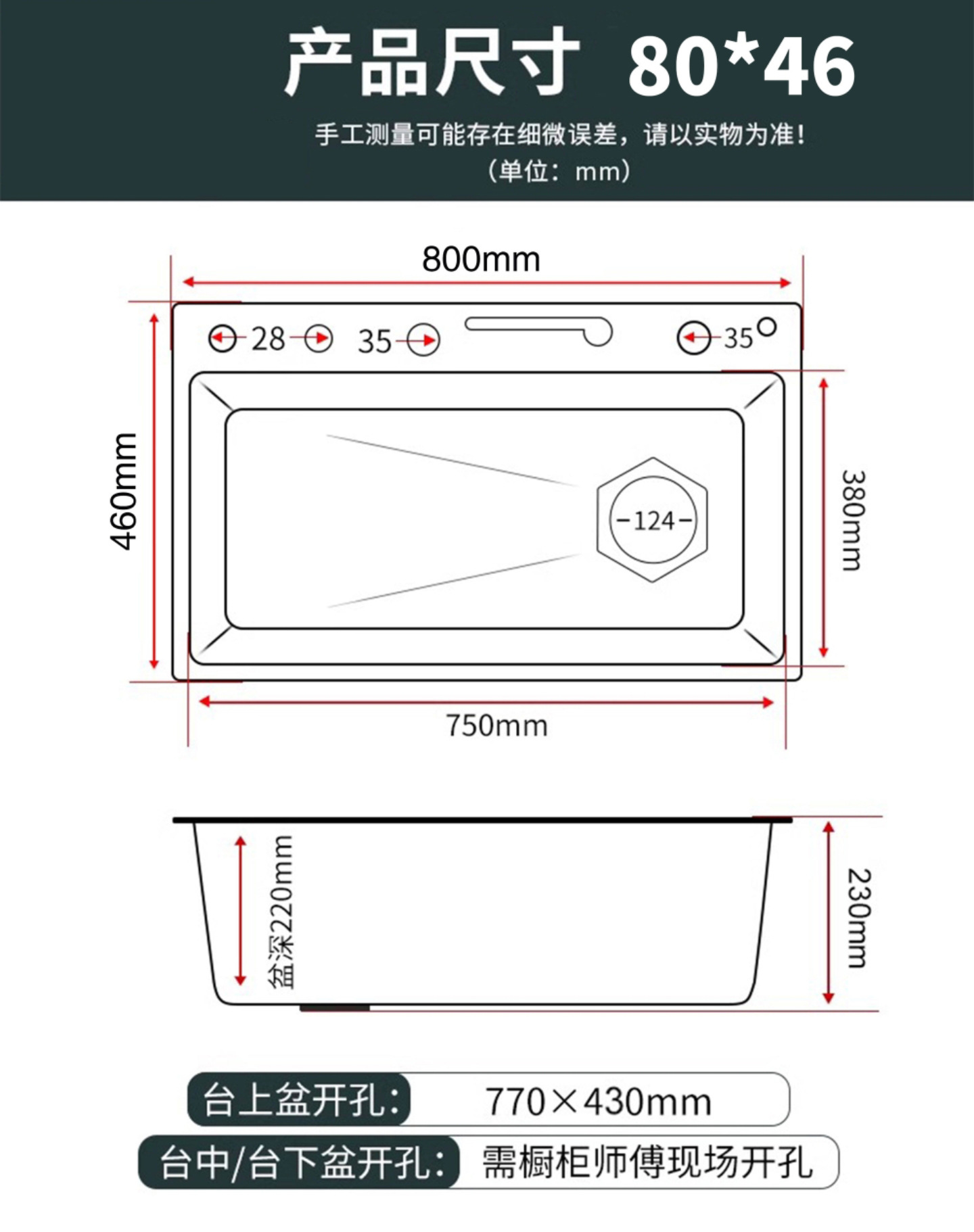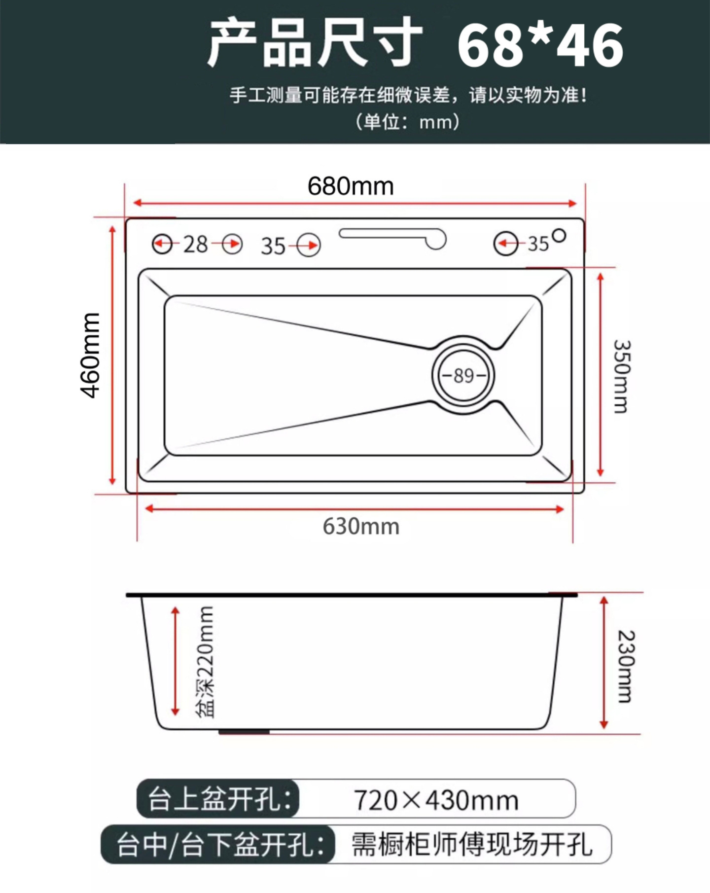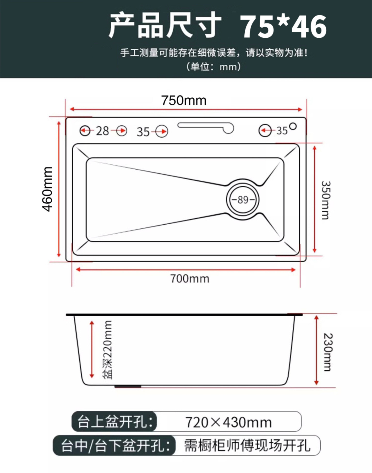 | Tamaño de agujero abierto | 750x450x230mm |