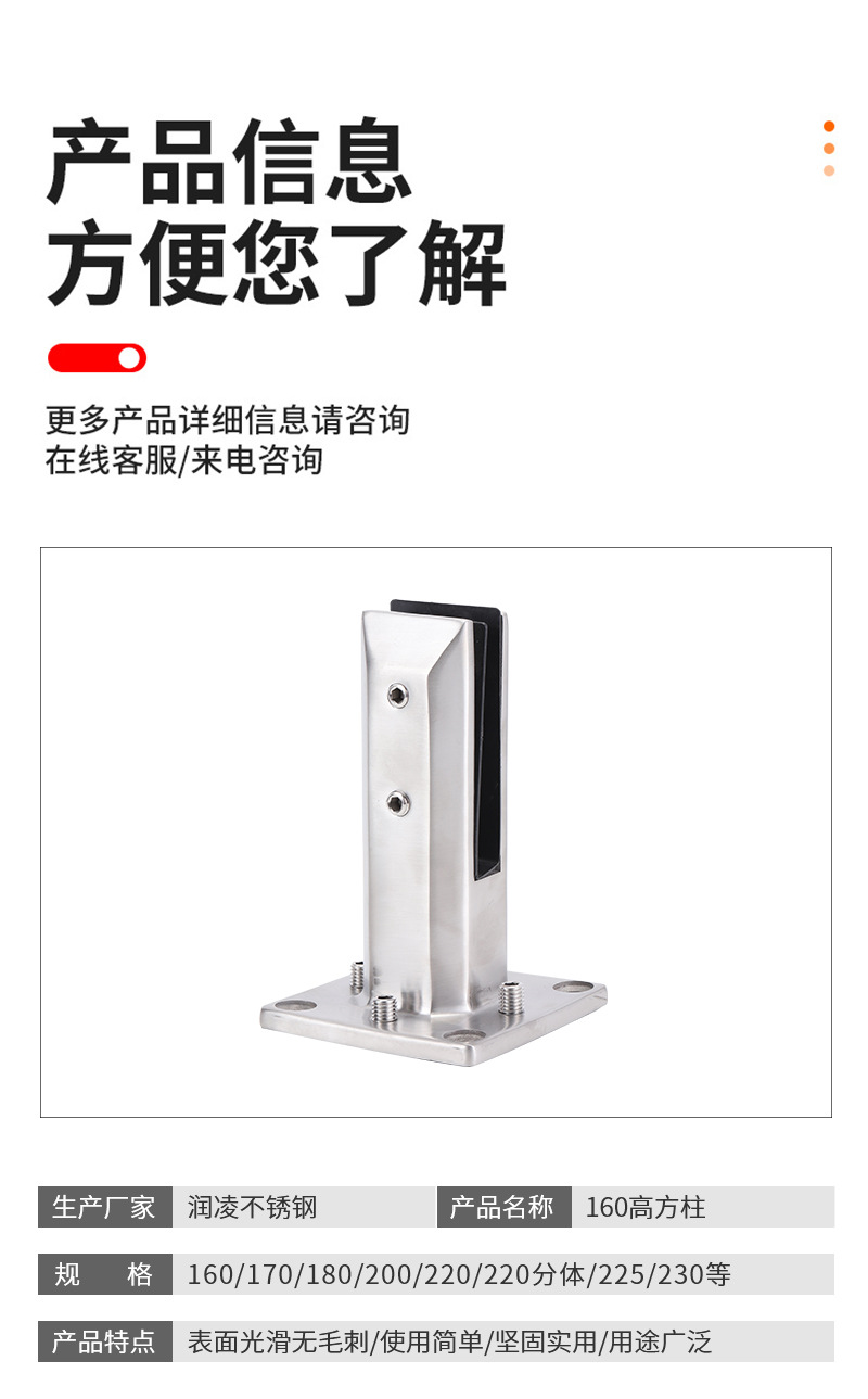 160 abrazadera de vidrio de 8 orificios de columna cuadrada alta