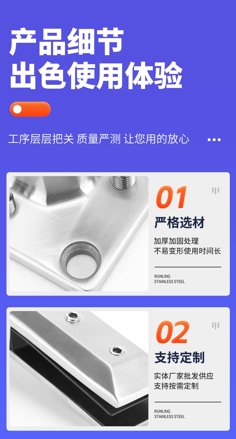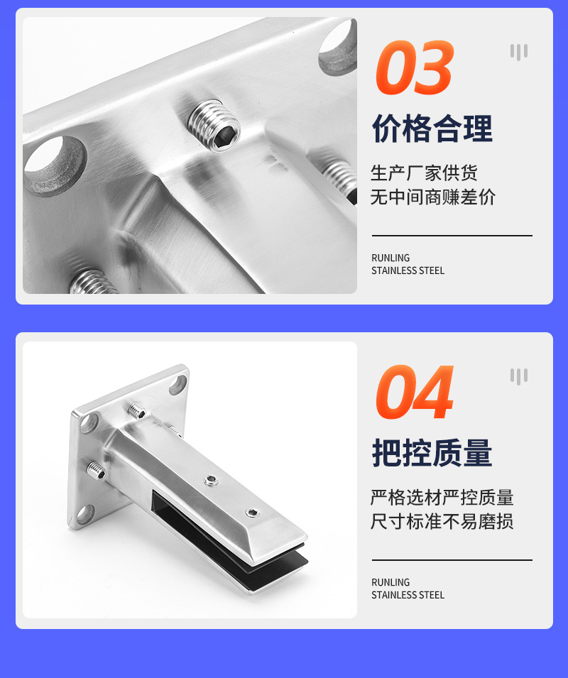 Los fabricantes de abrazaderas de vidrio suministran abrazaderas de vidrio para piscinas de acero inoxidable, accesorios de fijación de barandillas de escaleras, abrazaderas de vidrio de piso