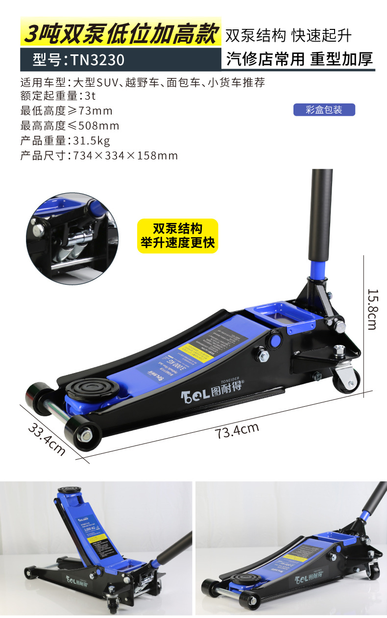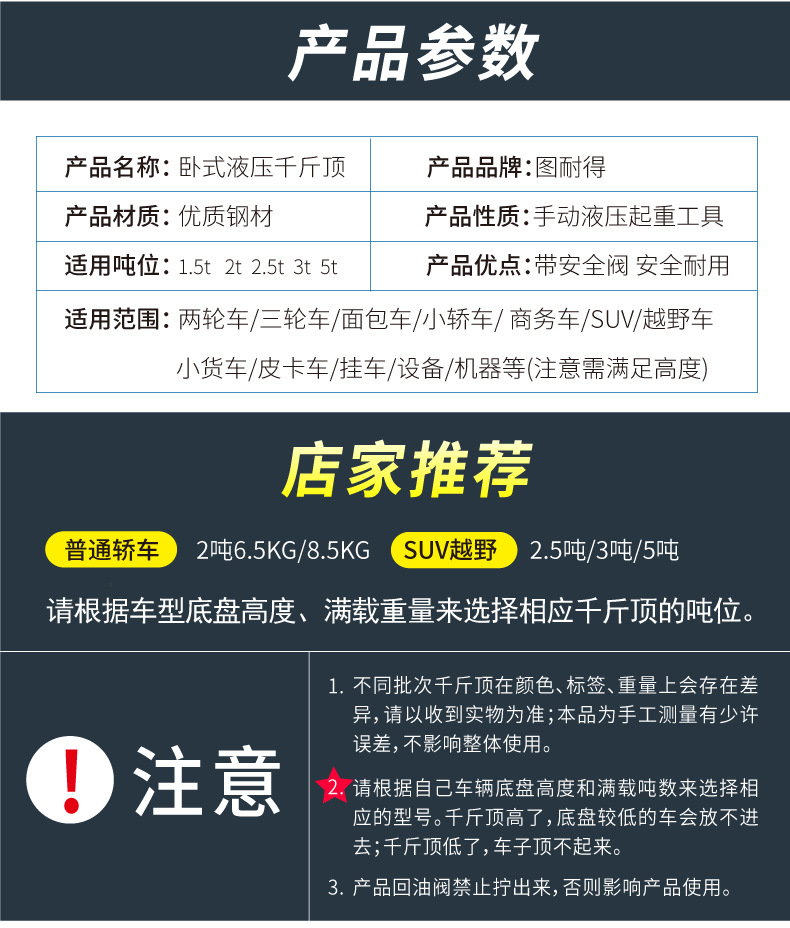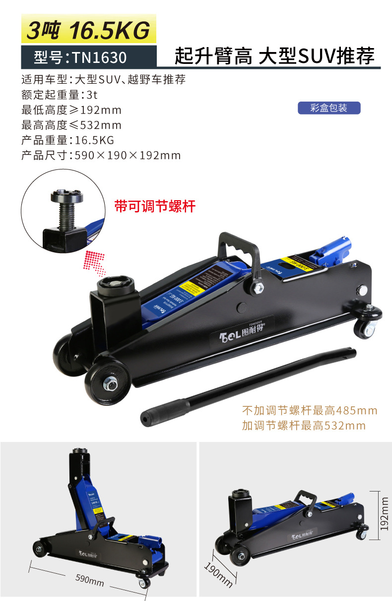 | Modelo | Estándar nacional horizontal de 1,5 toneladas [paquete de cartón] limitado a 1 juego,Estándar nacional horizontal de 1,5 toneladas [paquete de cartón] recomendación de mini coche,Estándar nacional horizontal de 1,5 toneladas [bolsa de almacenamiento] recomendación de mini coche,Refuerce horizontal de 2 toneladas [paquete de cartón] recomendación de coche pequeño,Mejora horizontal de 2 toneladas [bolsa de almacenamiento] recomendación de coche pequeño,Refuerzo horizontal de 2 toneladas [caja de plástico] recomendación de coche pequeño,Mejoramiento horizontal de 2 toneladas [paquete de cartón] Se recomiendan automóviles medianos, medianos y grandes,Mejora horizontal de 2 toneladas [caja de plástico] Se recomiendan automóviles medianos, medianos y grandes,Tipo de uso general horizontal de 2 toneladas [paquete de cartón] SUV recomendado,Recomendación de SUV horizontal de uso general de 2 toneladas [caja de plástico],Horizonte de 2,5 toneladas reforzado [paquete de cartón] recomendación de coche de bajo nivel y SUV,Horizonte de 2,5 toneladas reforzado [caja de plástico] Se recomiendan automóviles y SUV de bajo nivel,Horizonte de 2,5 toneladas integrado [paquete de cartón] recomendación de coche de bajo nivel y SUV,Rotación de barra de presión horizontal de 2,5 toneladas [paquete de cartón] recomendación de automóvil y SUV de bajo nivel,Refuerzo horizontal de 3 toneladas [paquete de cartón] se recomiendan furgonetas y SUV,Refuerzo horizontal de 3 toneladas [caja de plástico] se recomiendan furgonetas y SUV,SUV grande horizontal de 3 toneladas especial [paquete de cartón] recomendación de SUV grande,Para taller de reparación de automóviles horizontal de 3 toneladas [bomba individual de 22KG] recomendado por taller de reparación de automóviles,Especial para taller de reparación de automóviles horizontal de 3,5 toneladas [bomba única de 27KG] recomendación de taller de reparación de automóviles,Especial para taller de reparación de automóviles horizontal de 3 toneladas [almohadilla de goma de doble bomba] recomendado por taller de reparación de automóviles,Especial para taller de reparación de automóviles horizontal de 3 toneladas [bomba doble baja] recomendación de taller de reparación de automóviles,Para taller de reparación de automóviles horizontal de 4 toneladas [bomba doble baja] recomendación de taller de reparación de automóviles,Para taller de reparación de automóviles horizontal de 5 toneladas [bomba doble baja] recomendación de taller de reparación de automóviles |