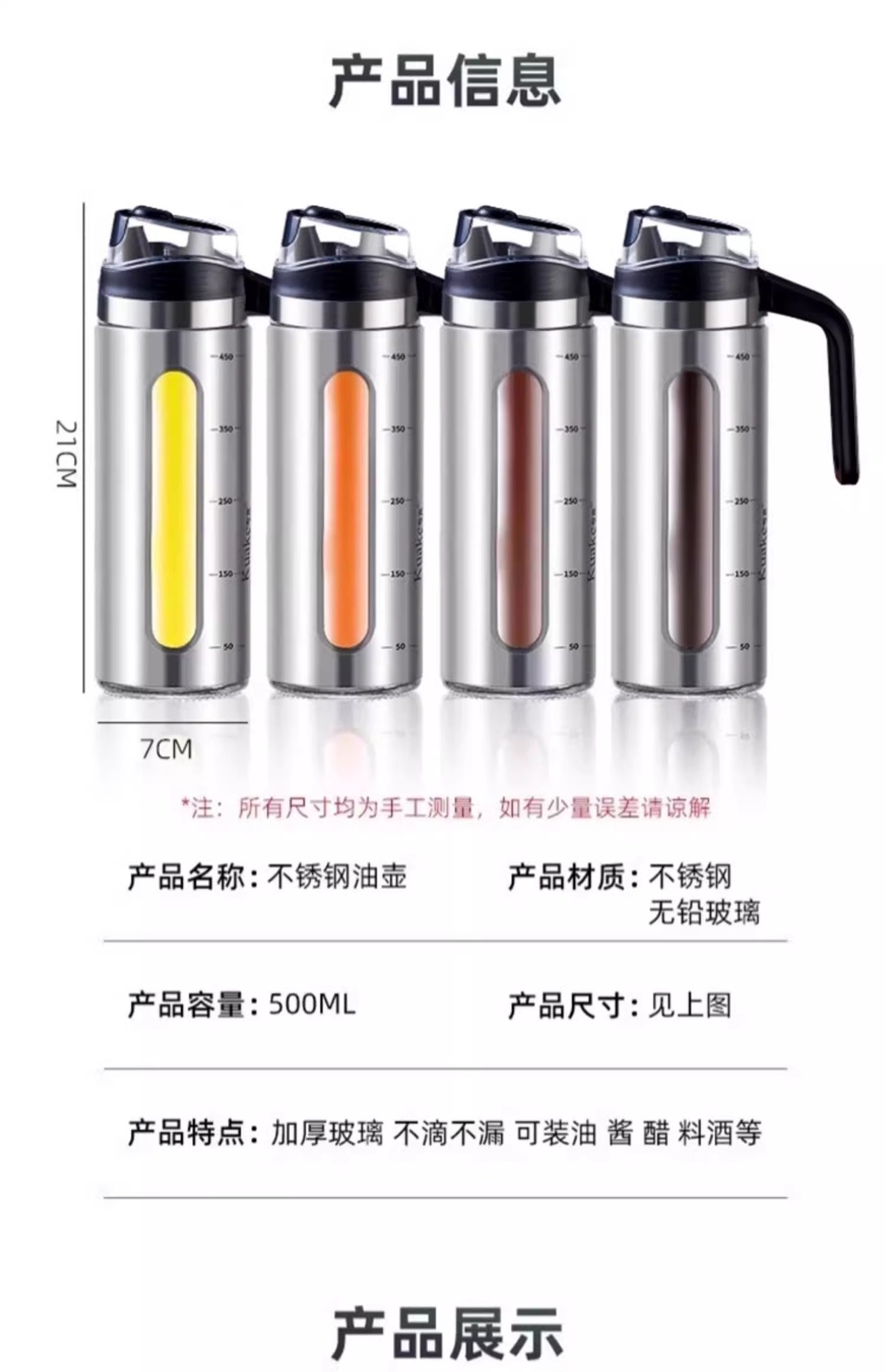 | Capacidad | 1 paquete de olla de aceite de 500ML [apertura y cierre automáticos] etiqueta gratuita,2 macetas de aceite de 500ML [apertura y cierre automáticos] etiqueta gratuita,3 macetas de aceite de 500ML [apertura y cierre automáticos] etiqueta gratuita,4 macetas de aceite de 500ML [apertura y cierre automáticos] etiqueta gratuita,5 macetas de aceite de 500ML [apertura y cierre automáticos] etiqueta gratuita |