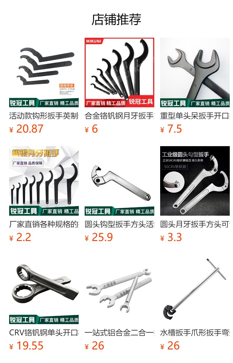 张家港锐冠工具有限公司多年专业生产手动工具,是全国各大机床厂附件产品的异形、非标工具的定点制造商。 专业生产月牙扳手、呆头扳手、ER扳手、敲击扳手、呆头单扳手。热忱欢迎广大新老客户来样或图纸订做加工各种非标工具、附件等产品。
