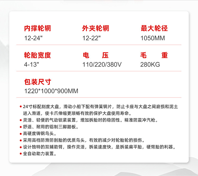 Spot lazo nueva máquina de desmontaje de neumáticos de automóvil de brazo auxiliar doble de 24 pulgadas máquina de desmontaje de neumáticos a prueba de explosiones