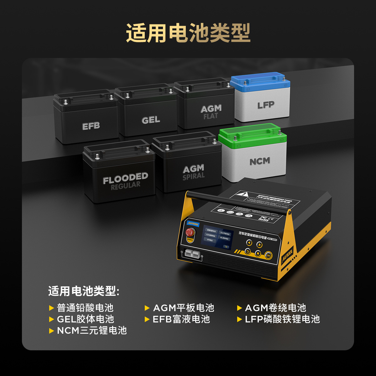 AUTOOL EM385 Programación de computadora de automóvil Fuente de alimentación regulada Batería de litio Carga Equipo de energía inteligente