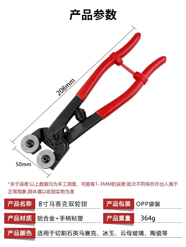 Alicates de doble rueda de mosaico de 8 pulgadas,Alicates de vidrio plano