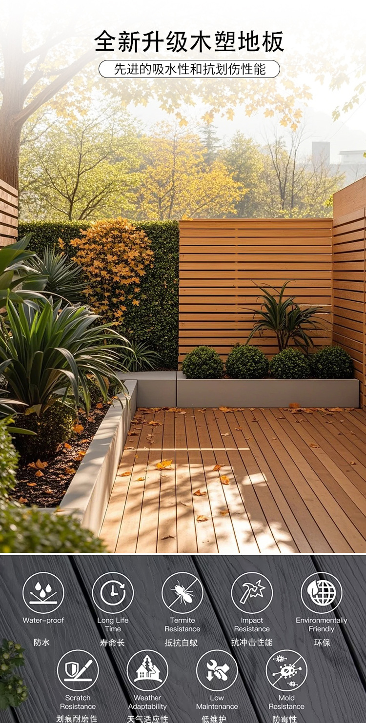 Barandilla de madera y plástico WPC Barandilla impermeable para macizos de flores al aire libre Jardín Huachi Valla de jardín Valla de madera de plástico